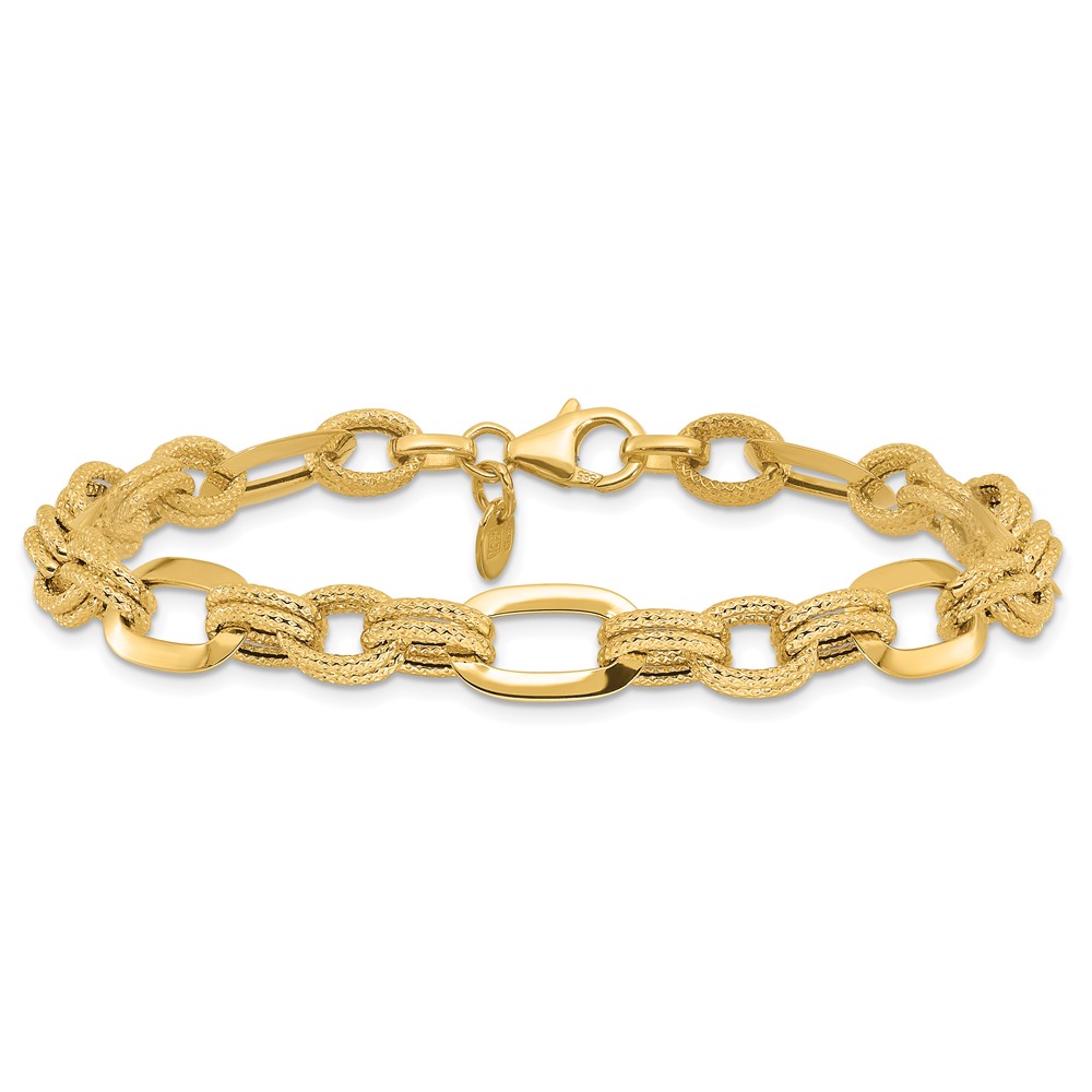 14K Polished and Textured 7.8mm Fancy Link 7.5 inch Bracelet