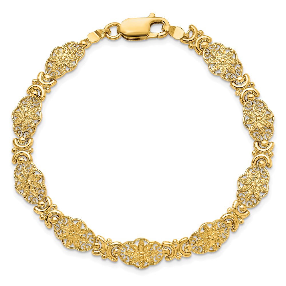 14K Polished and Textured Fancy Floral Link 7.5 inch Bracelet