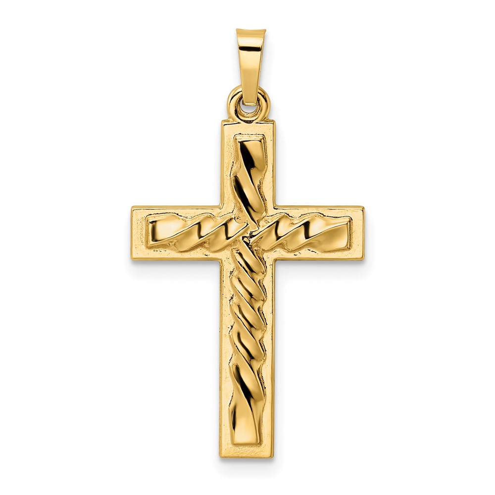 14k Polished and Twisted Hollow Cross Pendant