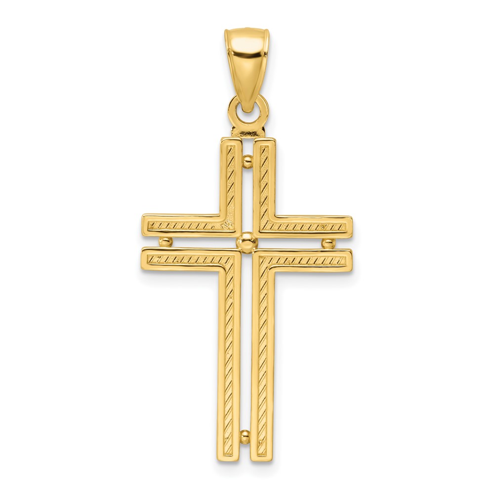 14K Polished Beaded Cross Pendant