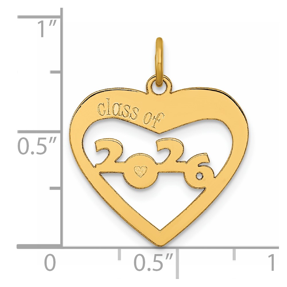 14K Polished CLASS OF 2026 Cut-Out Heart Charm