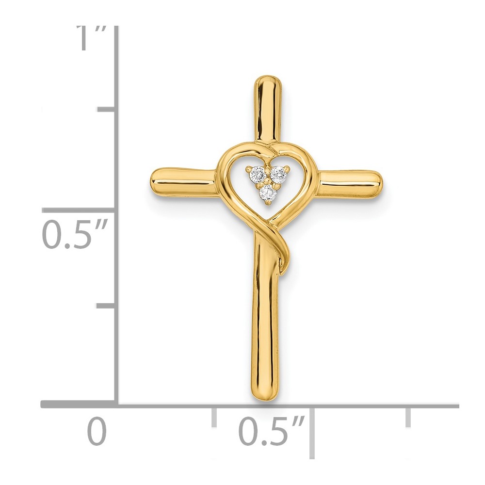 14k Polished Cross with Heart Diamond Chain Slide