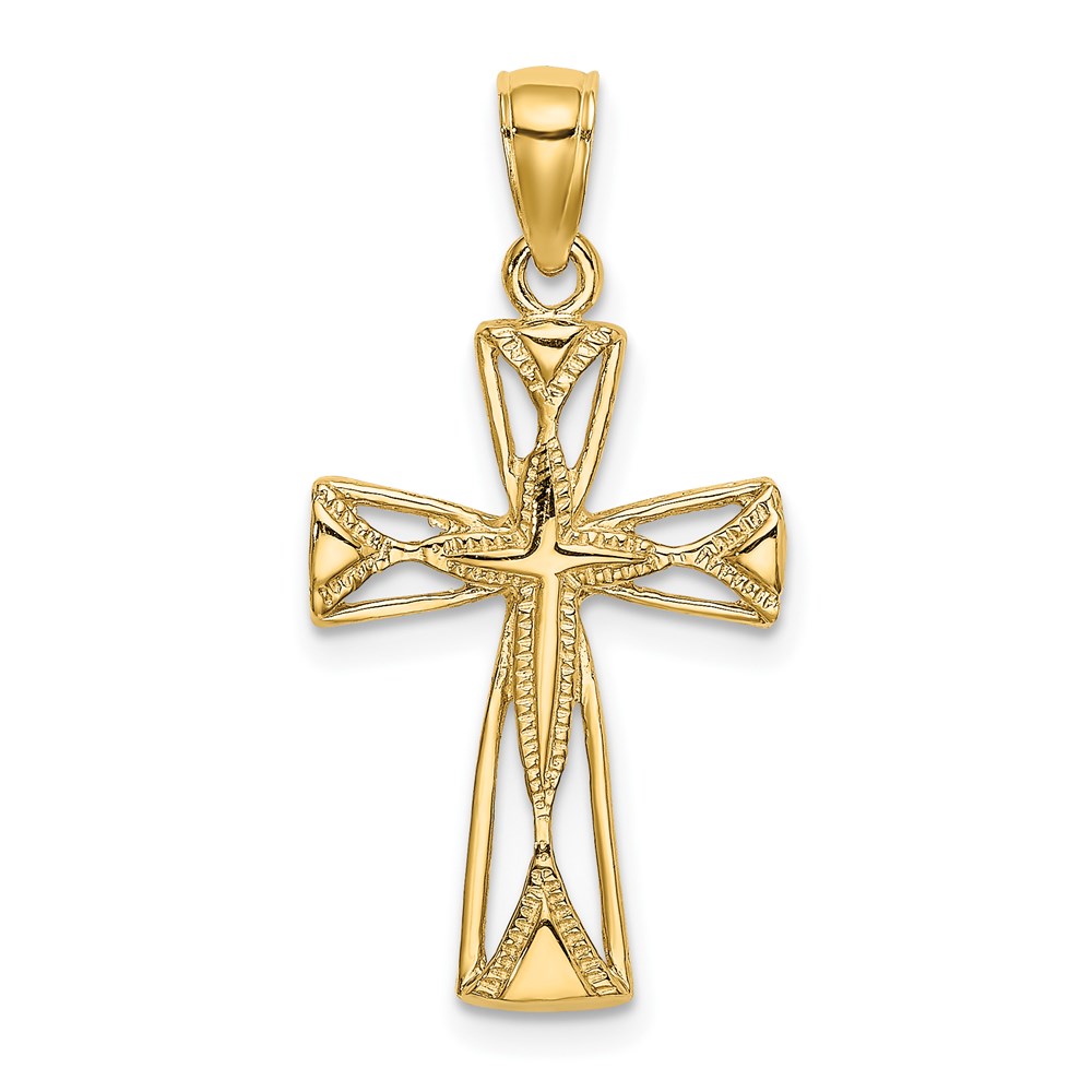 14K Polished Cut-Out Cross with Triangle Ends Charm