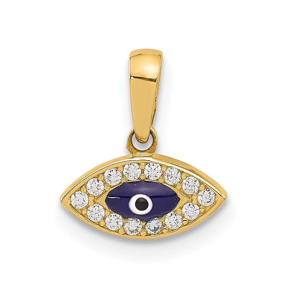 14K and White Rhodium Diamond-cut Evil Eye Pendant