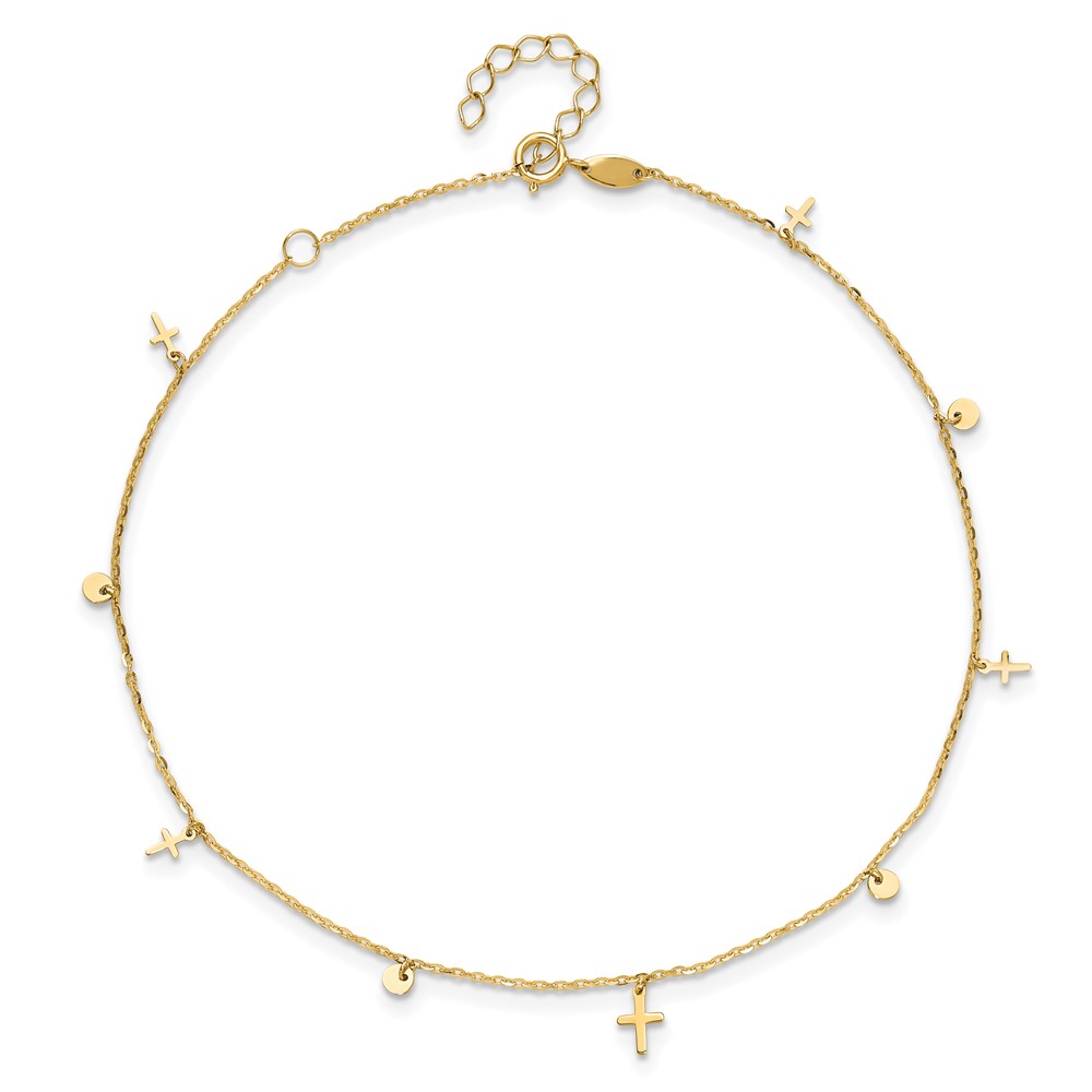 14K Polished Dangle Crosses and Circles Plus 2 in Extender – Total Anklet