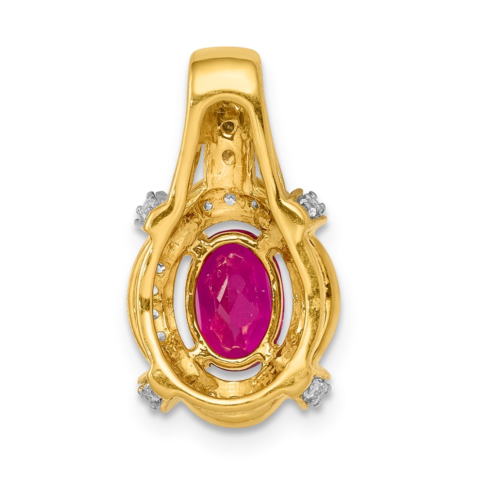 14k Polished Diamond and 7x5mm Oval Ruby Vintage Pendant