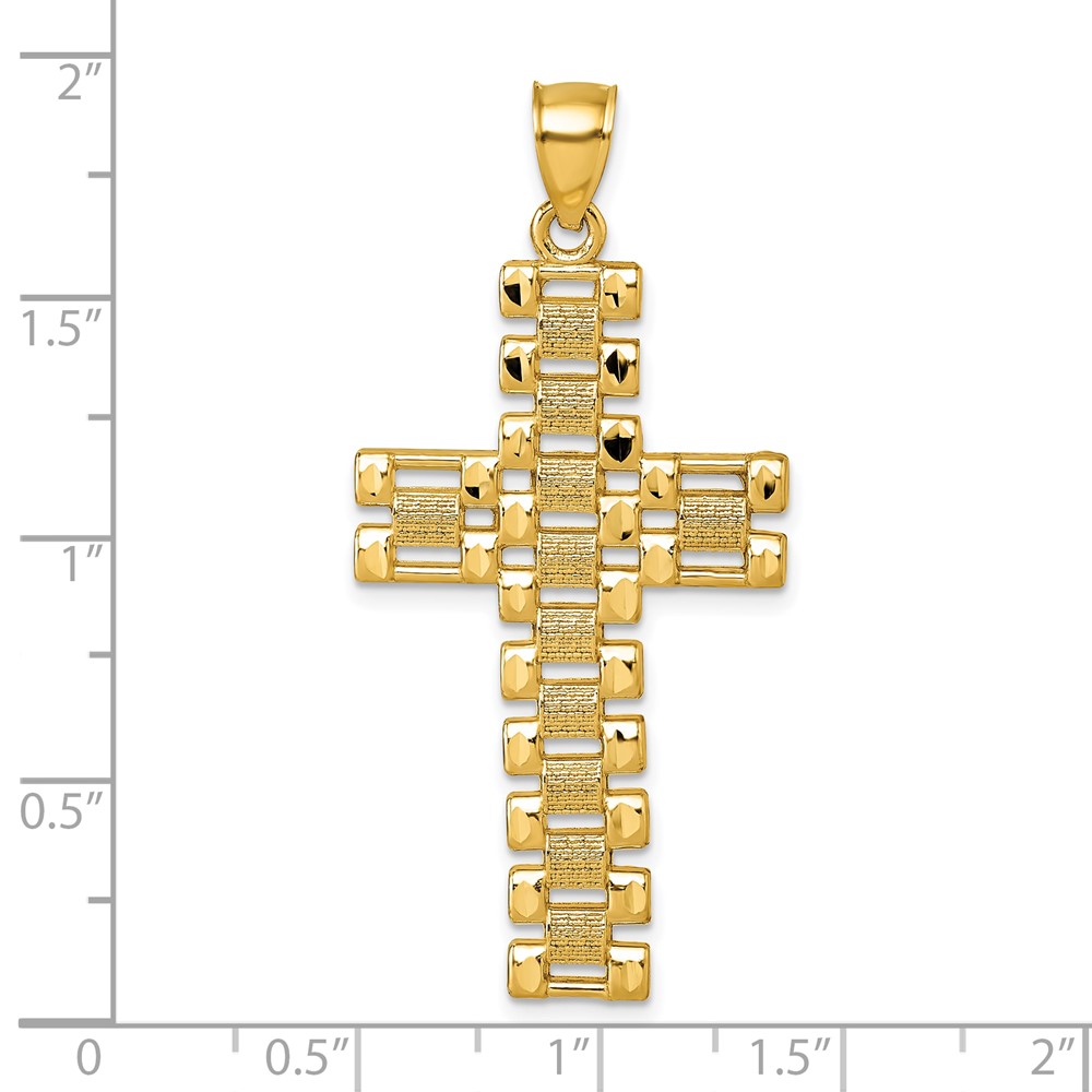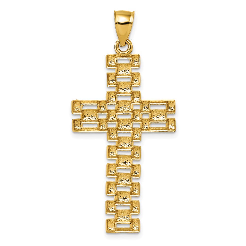 14k Polished Diamond-cut Textured Fancy Link Design Latin Cross Pendant