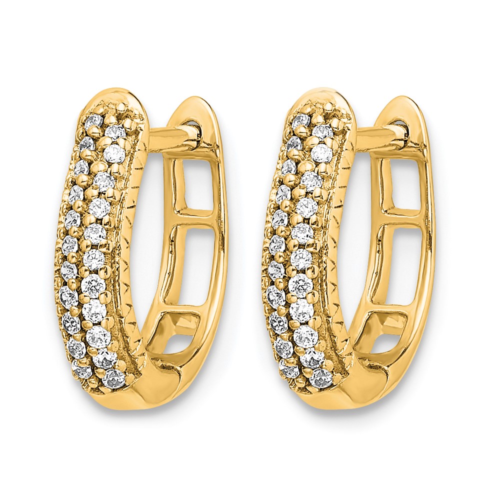 14k Polished Diamond Hinged Hoop Earrings