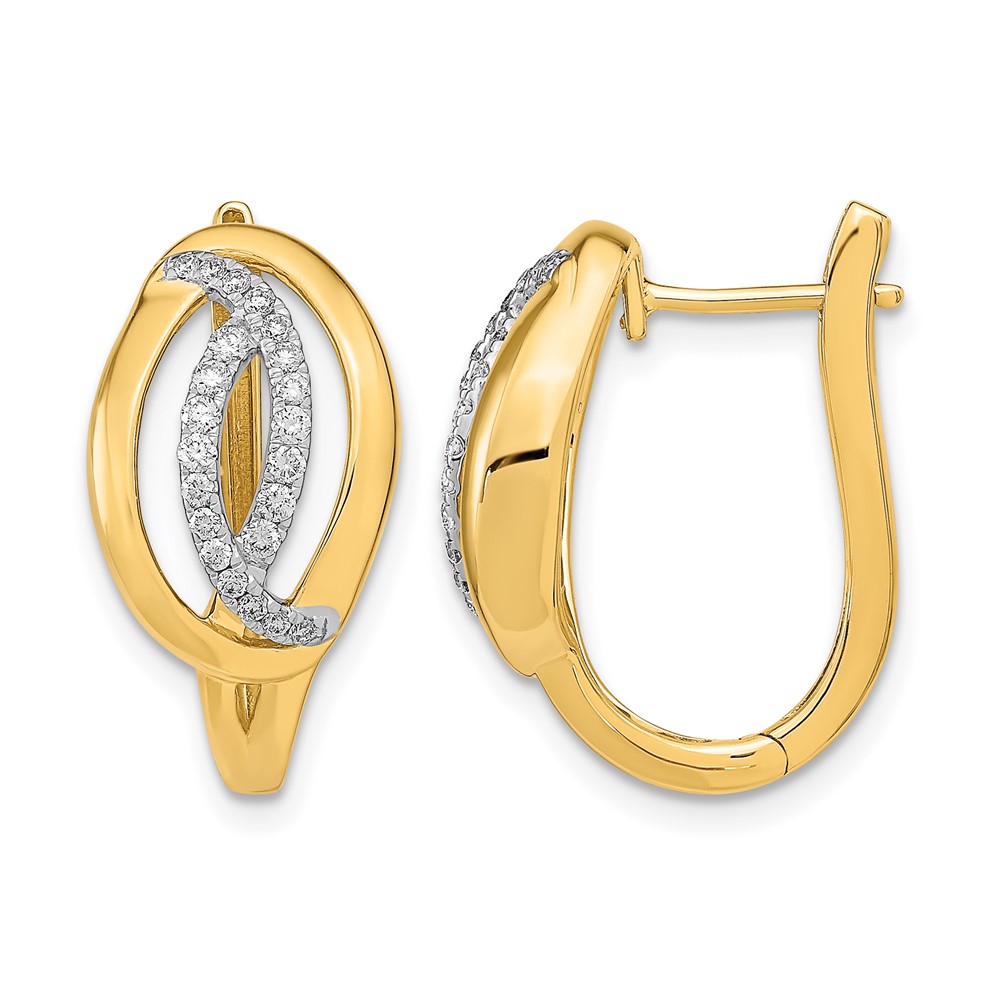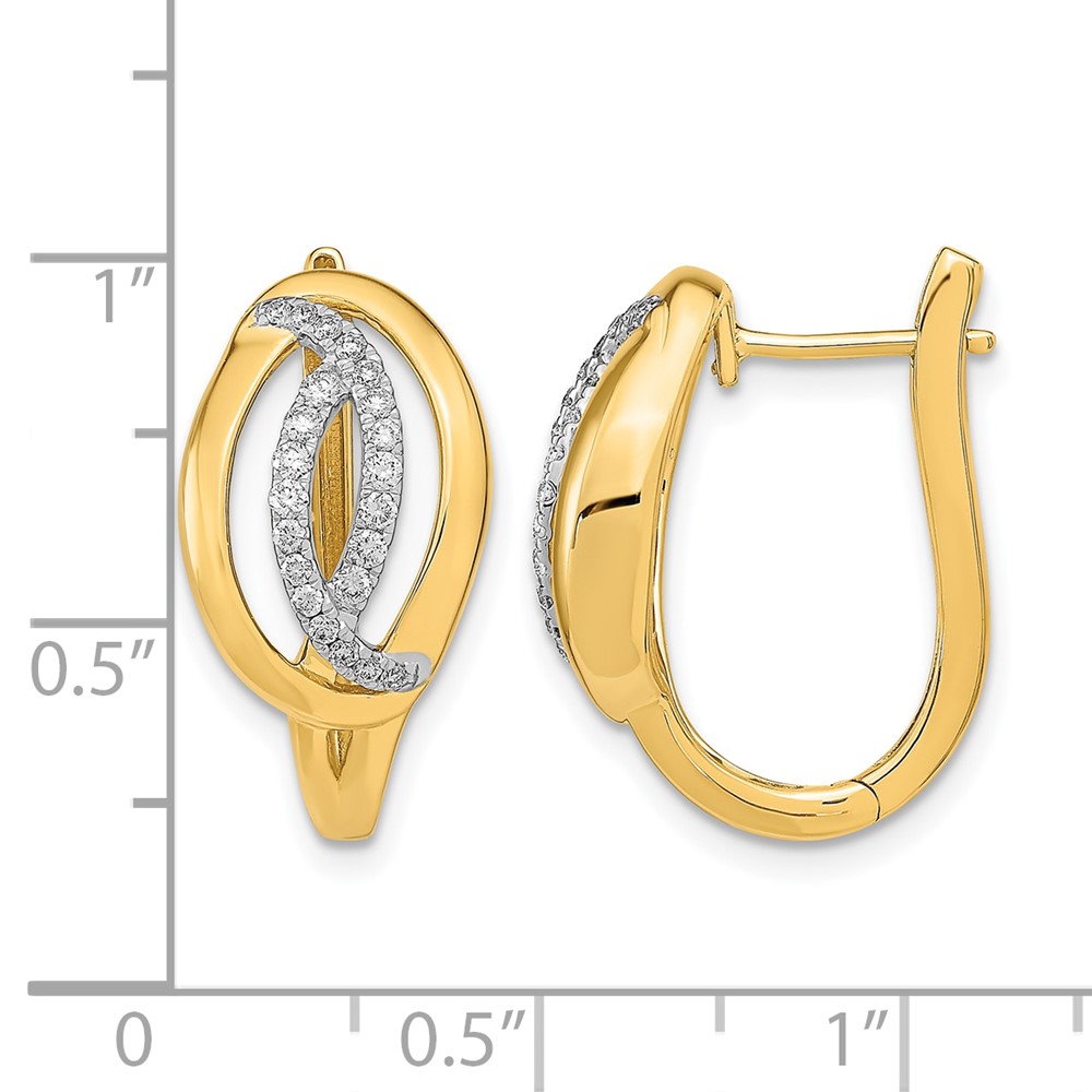 14k Polished Diamond Oval Hinged Hoop Earrings