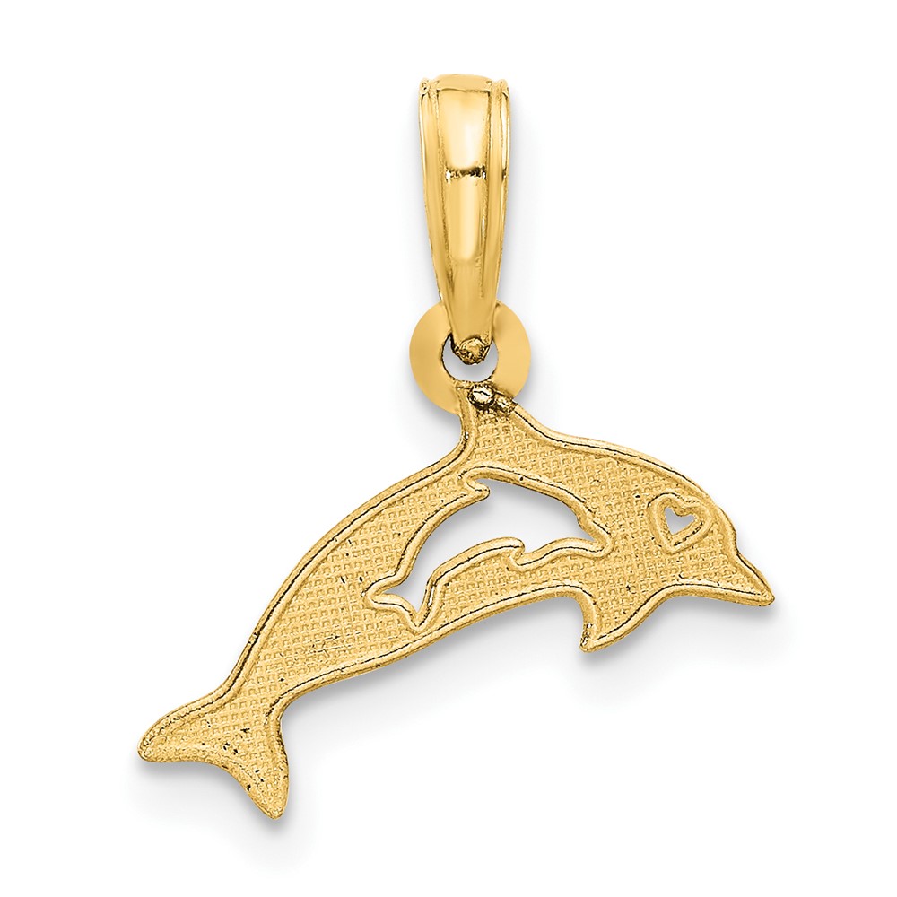 14k Polished Dolphin with Cut-out Baby Dolphin Pendant