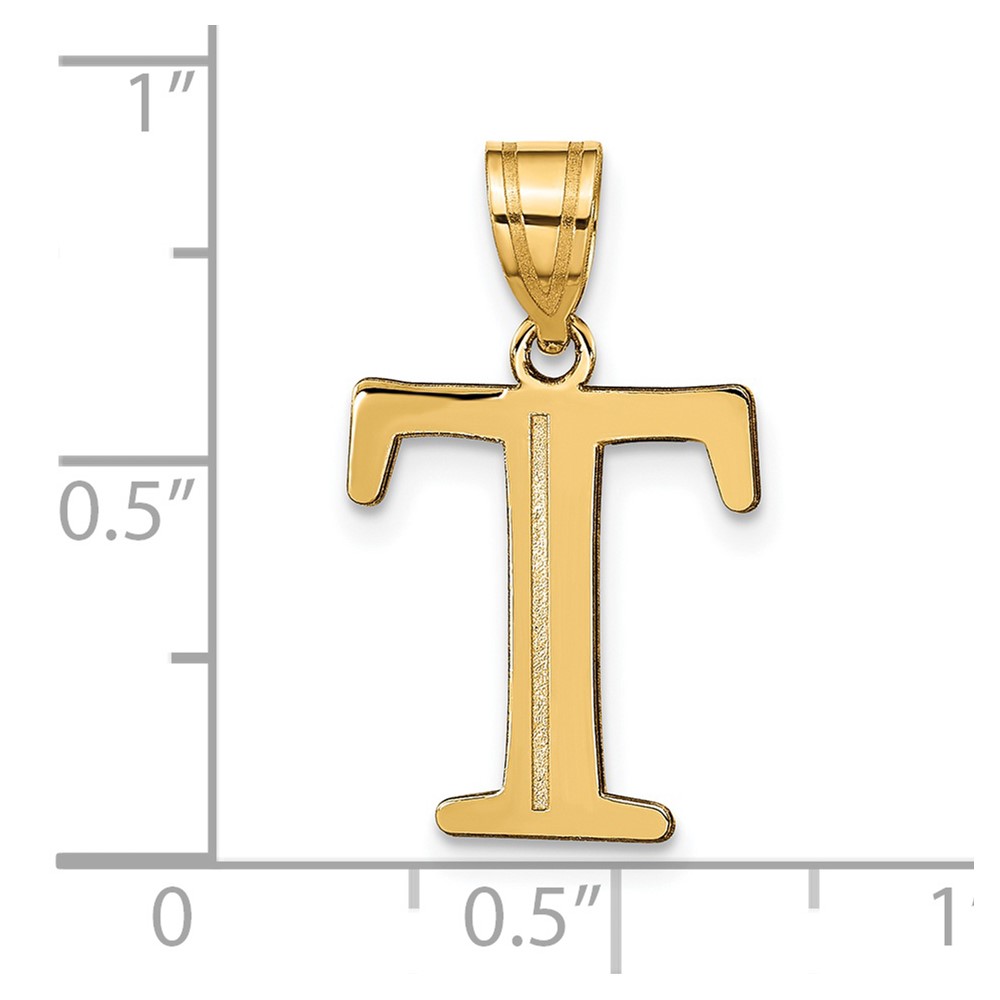 14k Polished Etched Letter T Initial Pendant