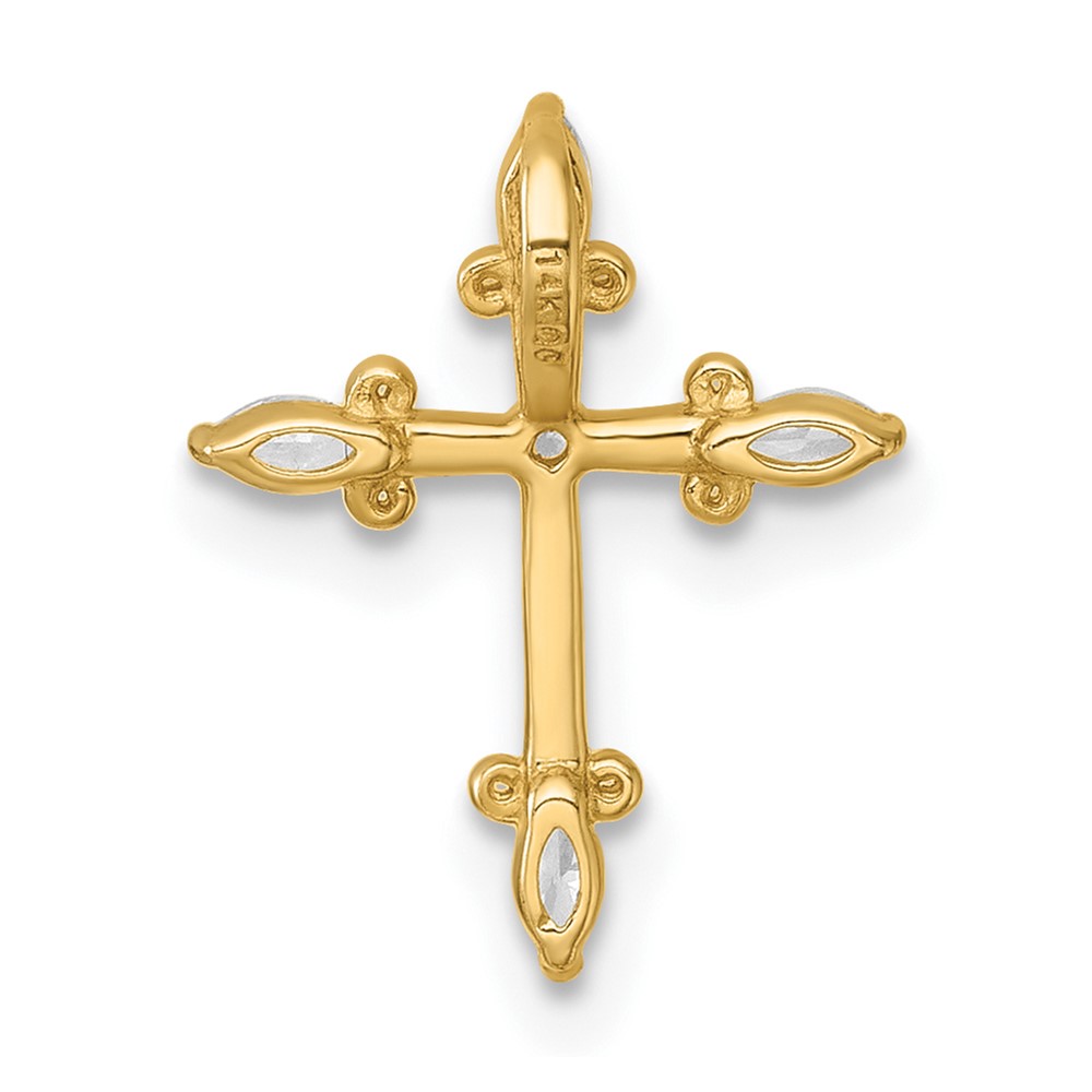 14k Polished Fancy CZ Cross Chain Slide Pendant