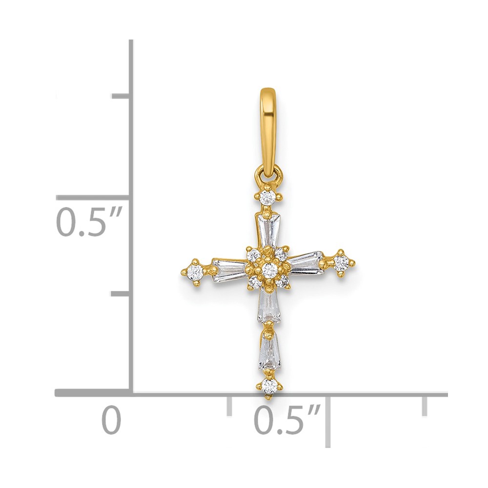 14k Polished and Beaded Fancy CZ Cross Charm / Pendant