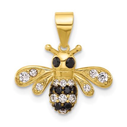 14K Polished Fancy Heart and Bee Honeycomb Charm