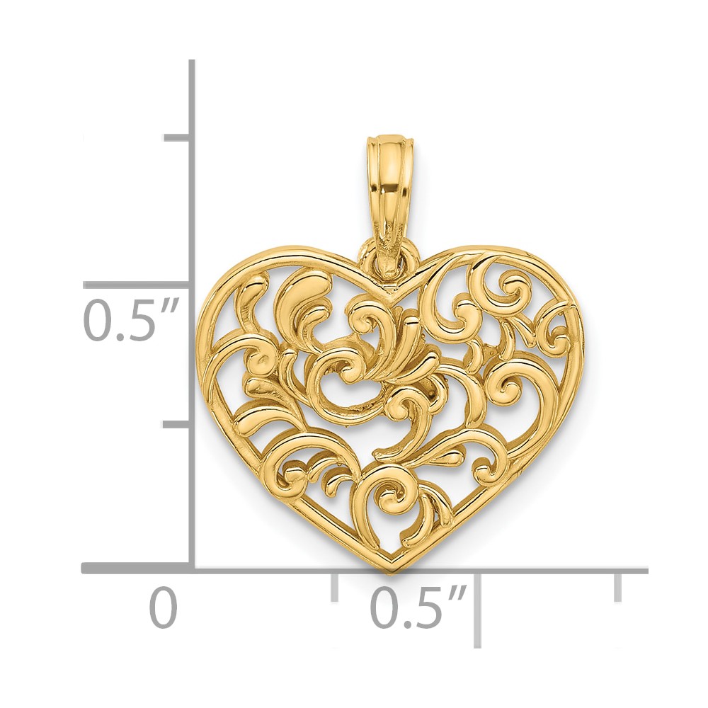 14K Polished Fancy Swirl Filigree Heart Charm