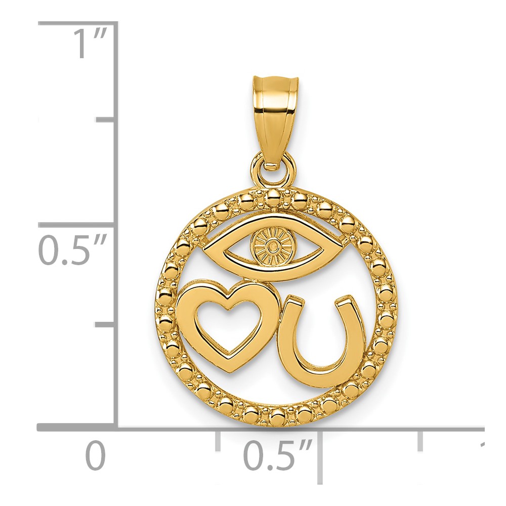 14k Polished Heart/Evil Eye/Horseshoe In Circle Pendant