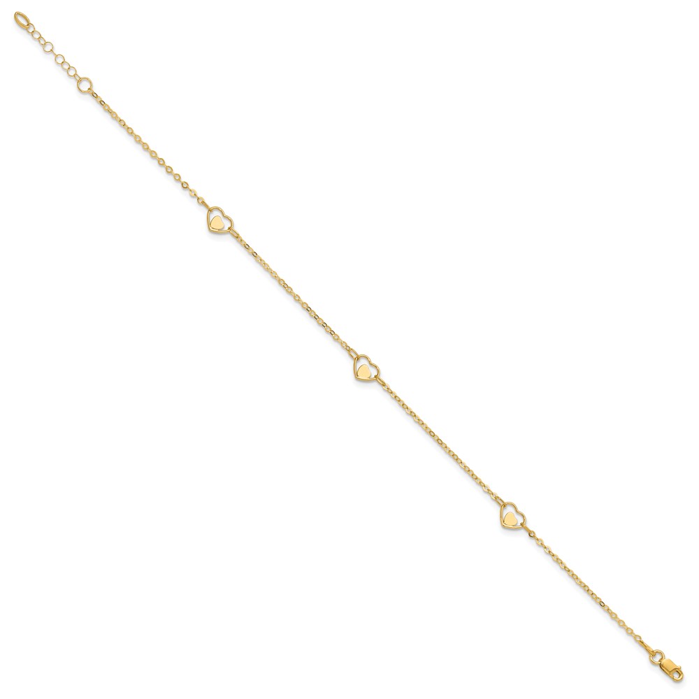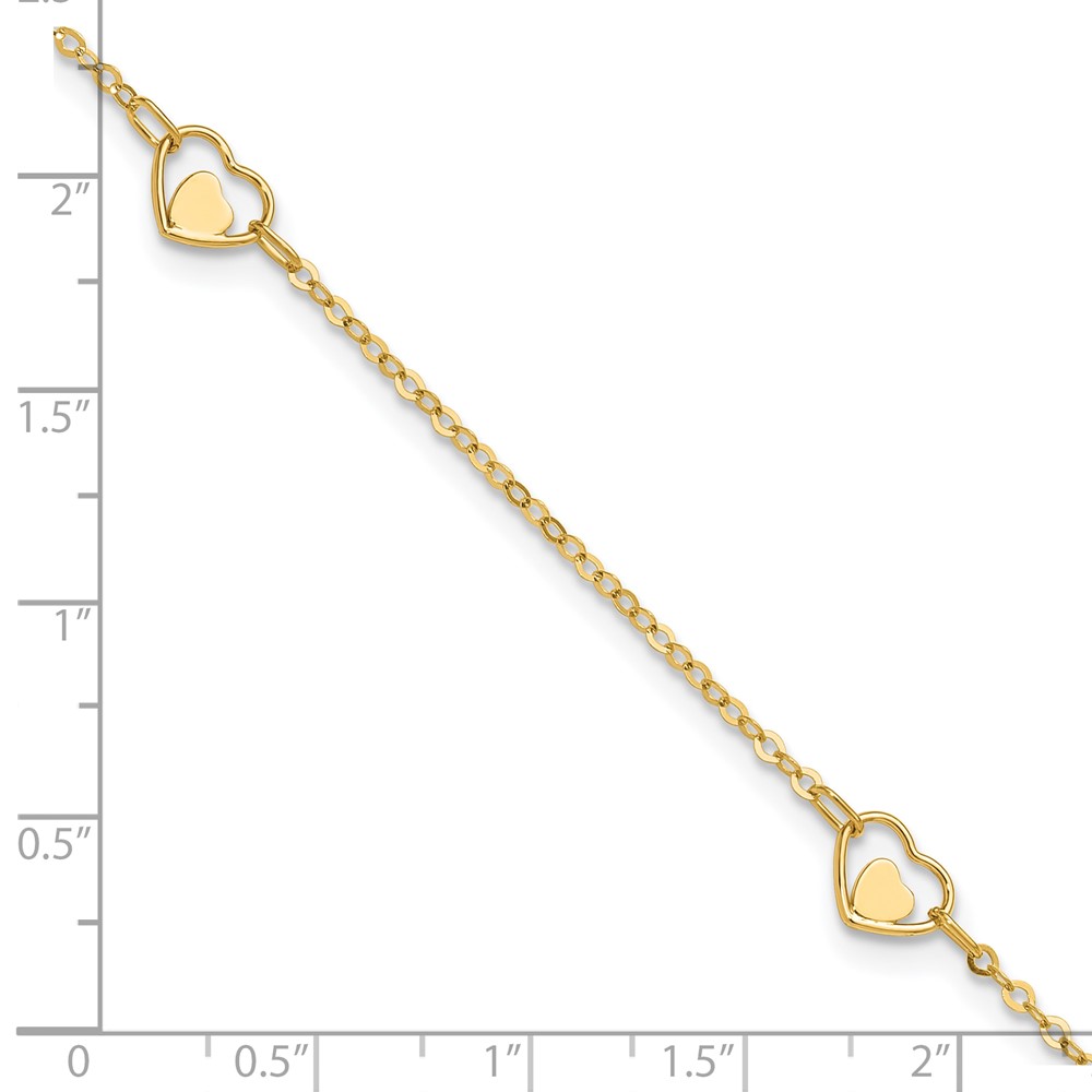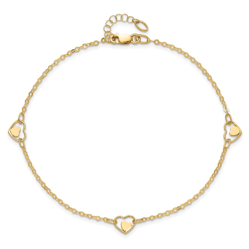 14K Polished Heart-in-Heart Links 3-Station Plus Extender – Total Anklet