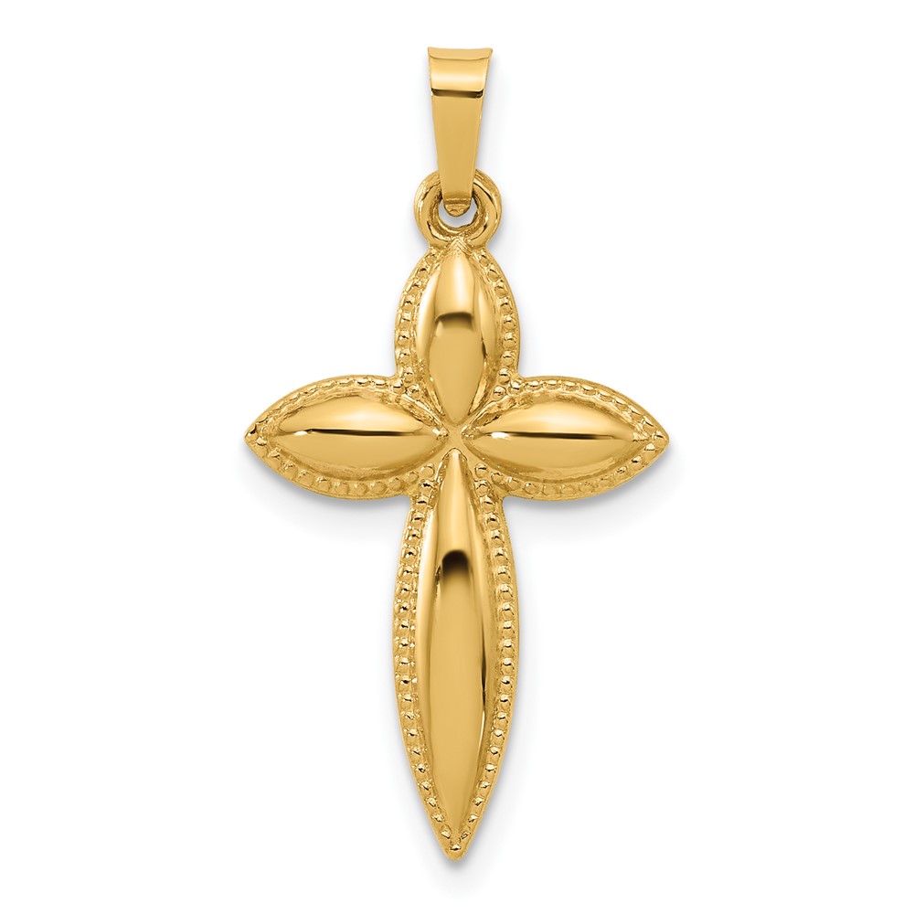 14k Polished Hollow Beaded Edge Passion Cross Pendant