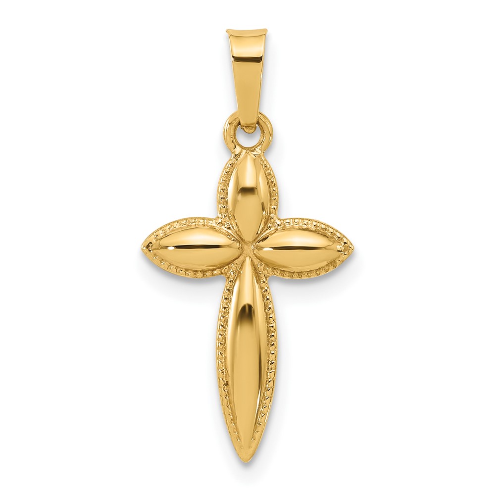 14k Polished Hollow Beaded Edge Passion Cross Pendant