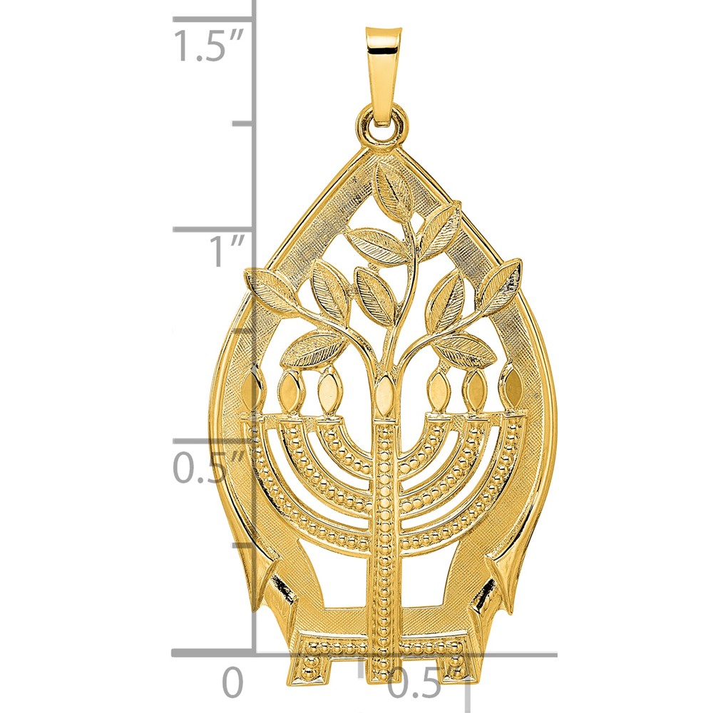 14k Polished Hollow Large Menorah and Tree of Life Pendant