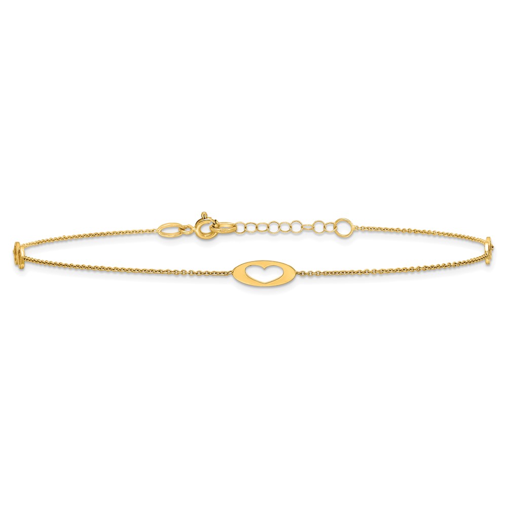 14k Two-tone Textured and Polished Open Heart Plus Extender – Total Anklet