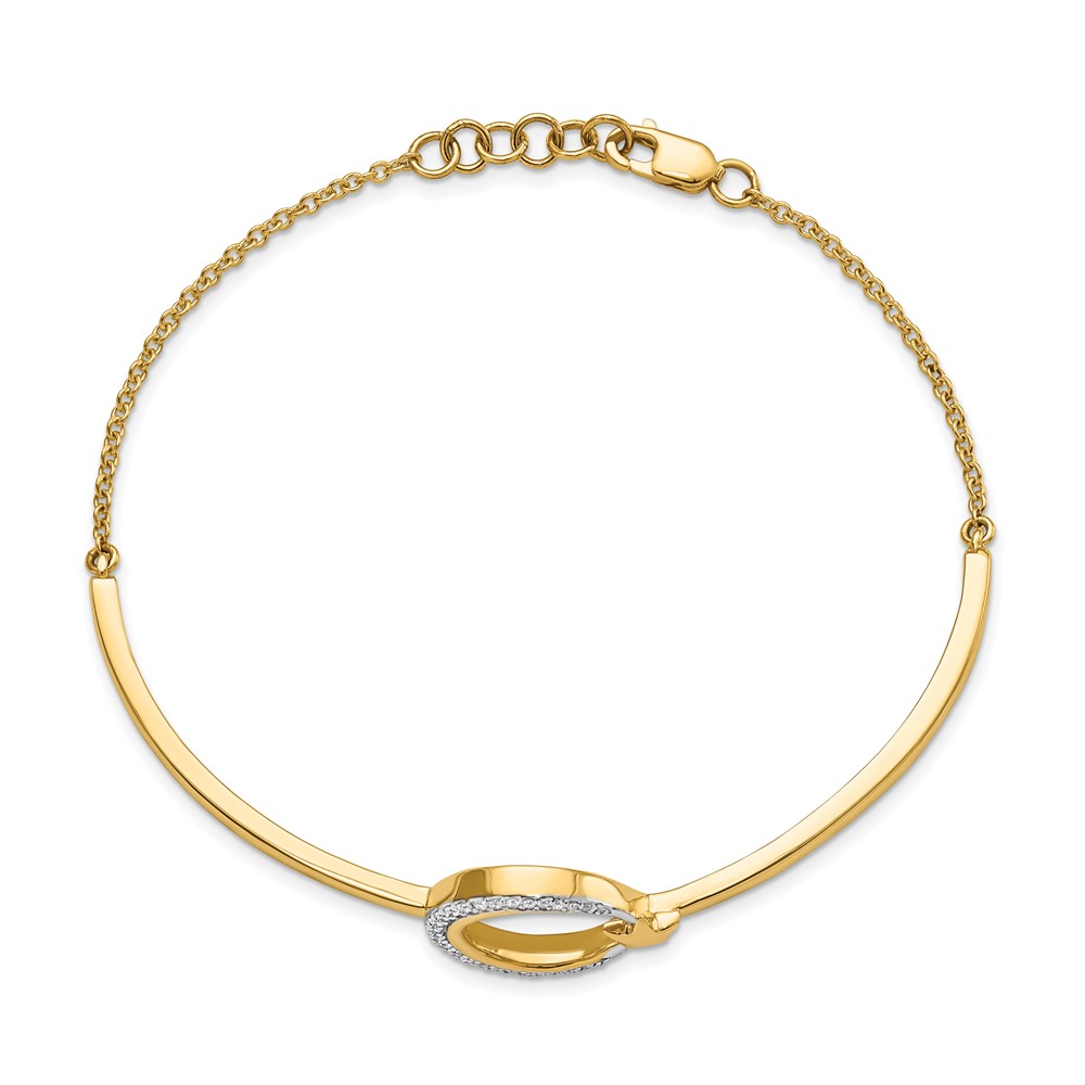 14k Polished Moon and Star Complete 1/8 carat Diamond Half-Bangle 7 inch Bracelet with 0.5 inch Extender