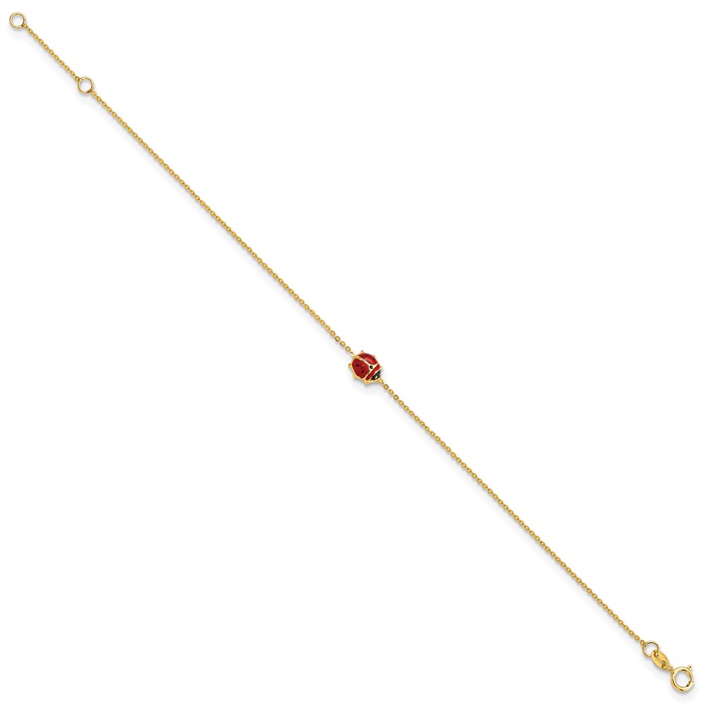 14k Polished Red and Black Enameled Ladybug 6.5 inch Childrens Bracelet Plus 0.75 inch Extender