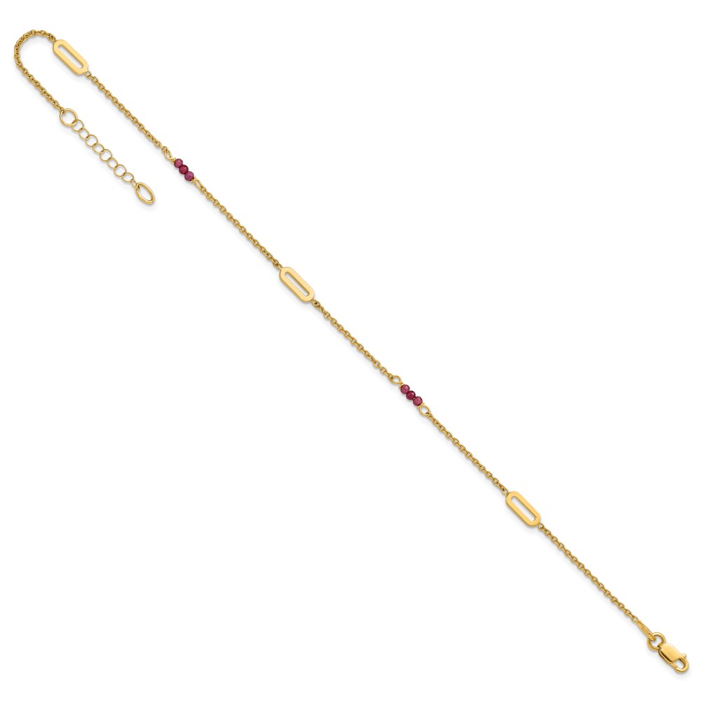 14k Polished Red Corundum Beads and Ovals Plus Extender – Total Anklet