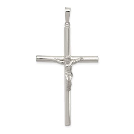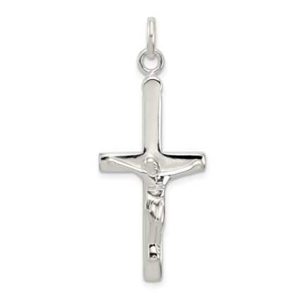 14k Polished Satin and Diamond-cut Crucifix Pendant