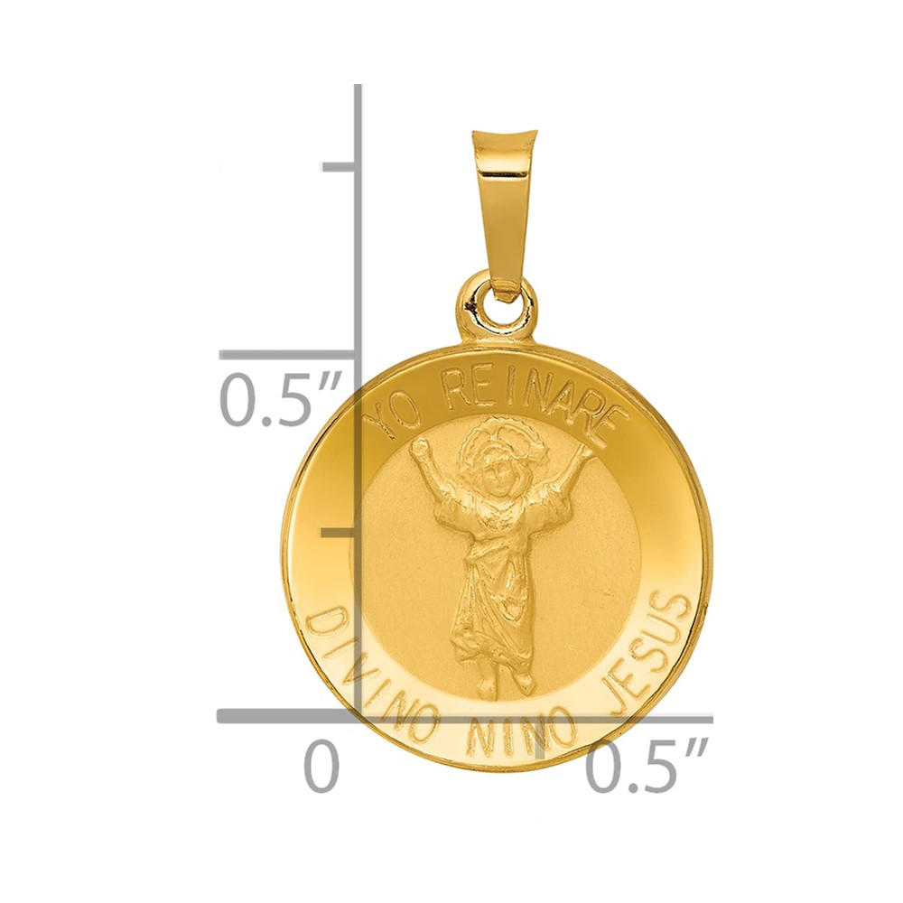 14K Polished Satin Hollow Spanish Divino Nino Round Medal Pendant