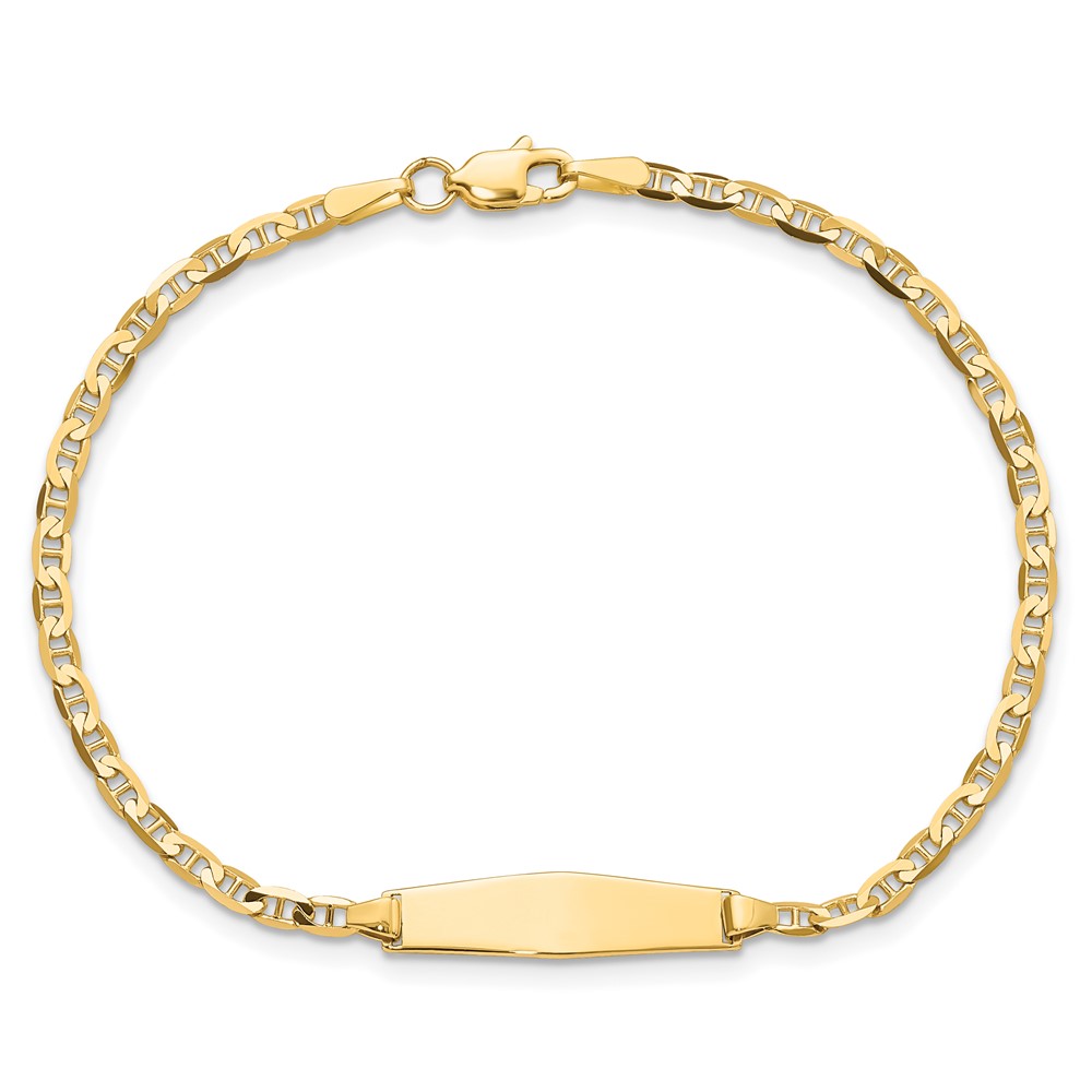 14k Polished Semi-Solid Chain/Solid Plate Anchor Link Soft Diamond Shape 19.5×5.5mm Plate 7 inch ID Bracelet