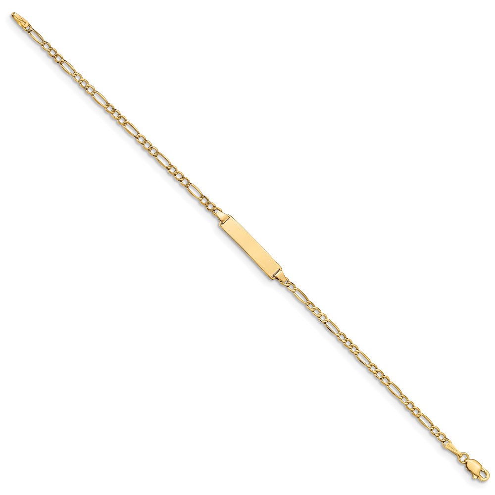14k Polished Semi-Solid Chain/Solid Plate Figaro Link 19.5×4.5mm Plate 8 inch ID Bracelet