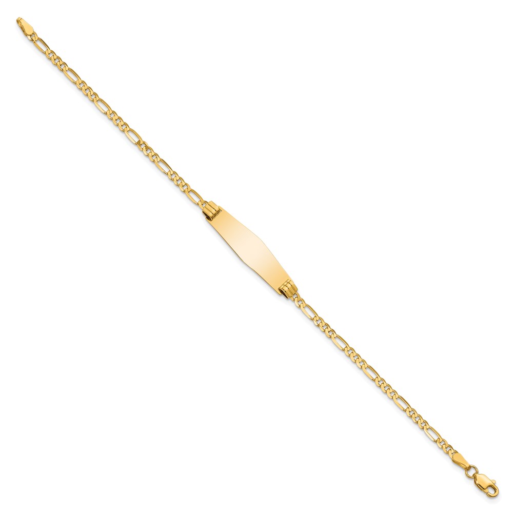14k Polished Solid Chain/Solid Plate Figaro Link Soft Diamond Shape 24.5×7.3mm Plate 7 inch ID Bracelet