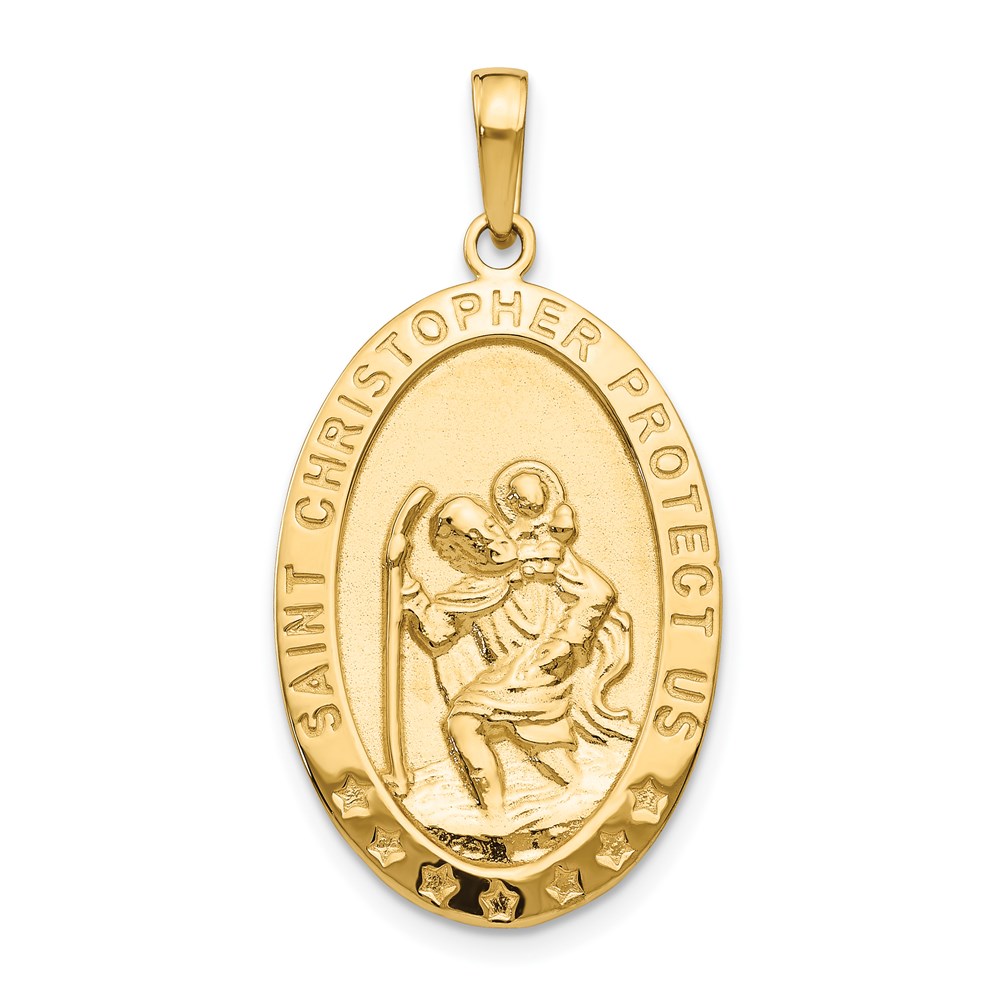 14k Polished and Satin Solid Saint Christopher Medal Oval Pendant