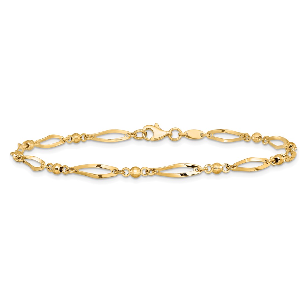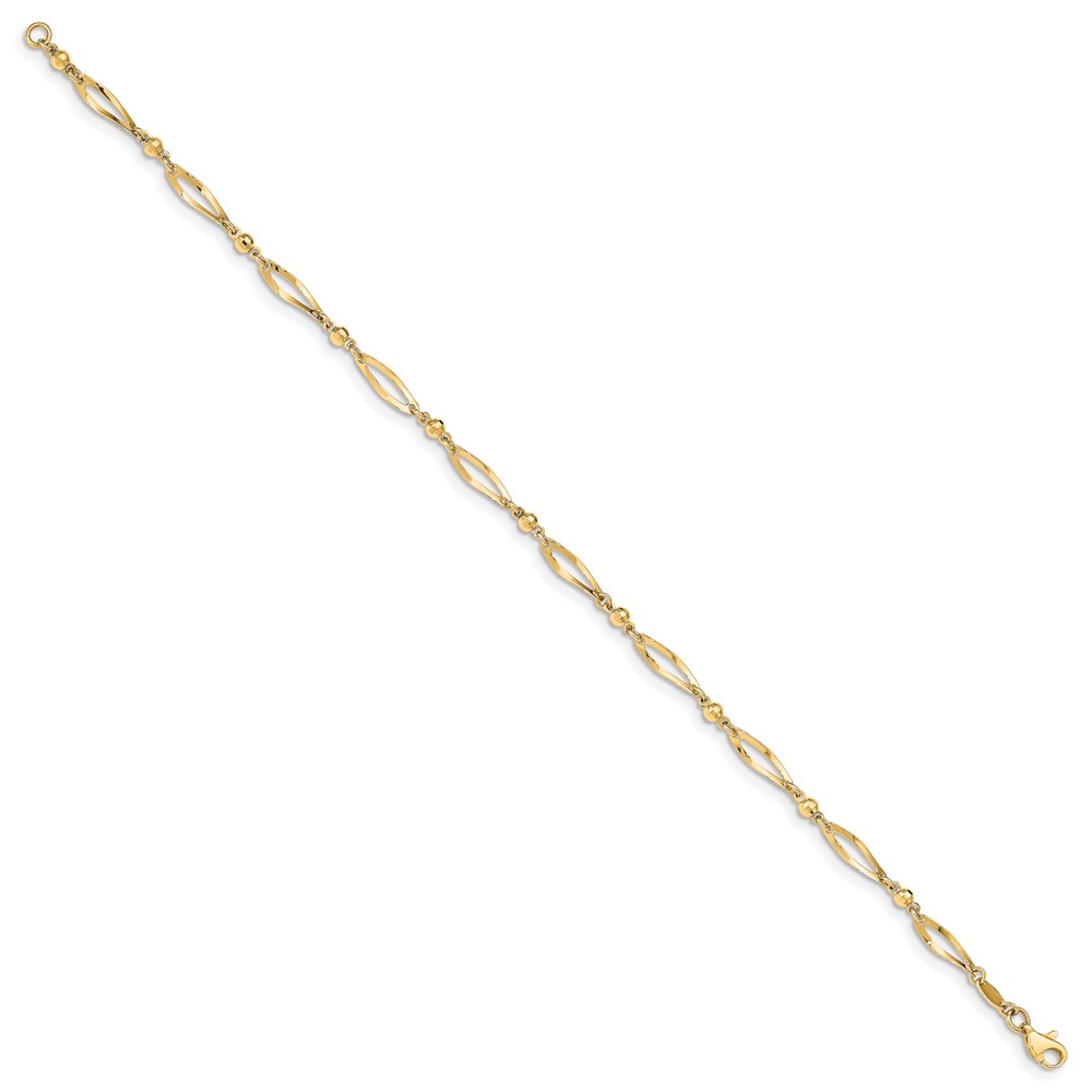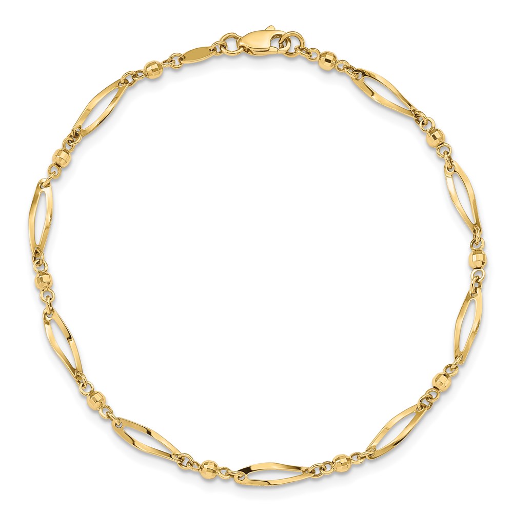 14k Polished Twisted Oval and Mirror Beads Anklet