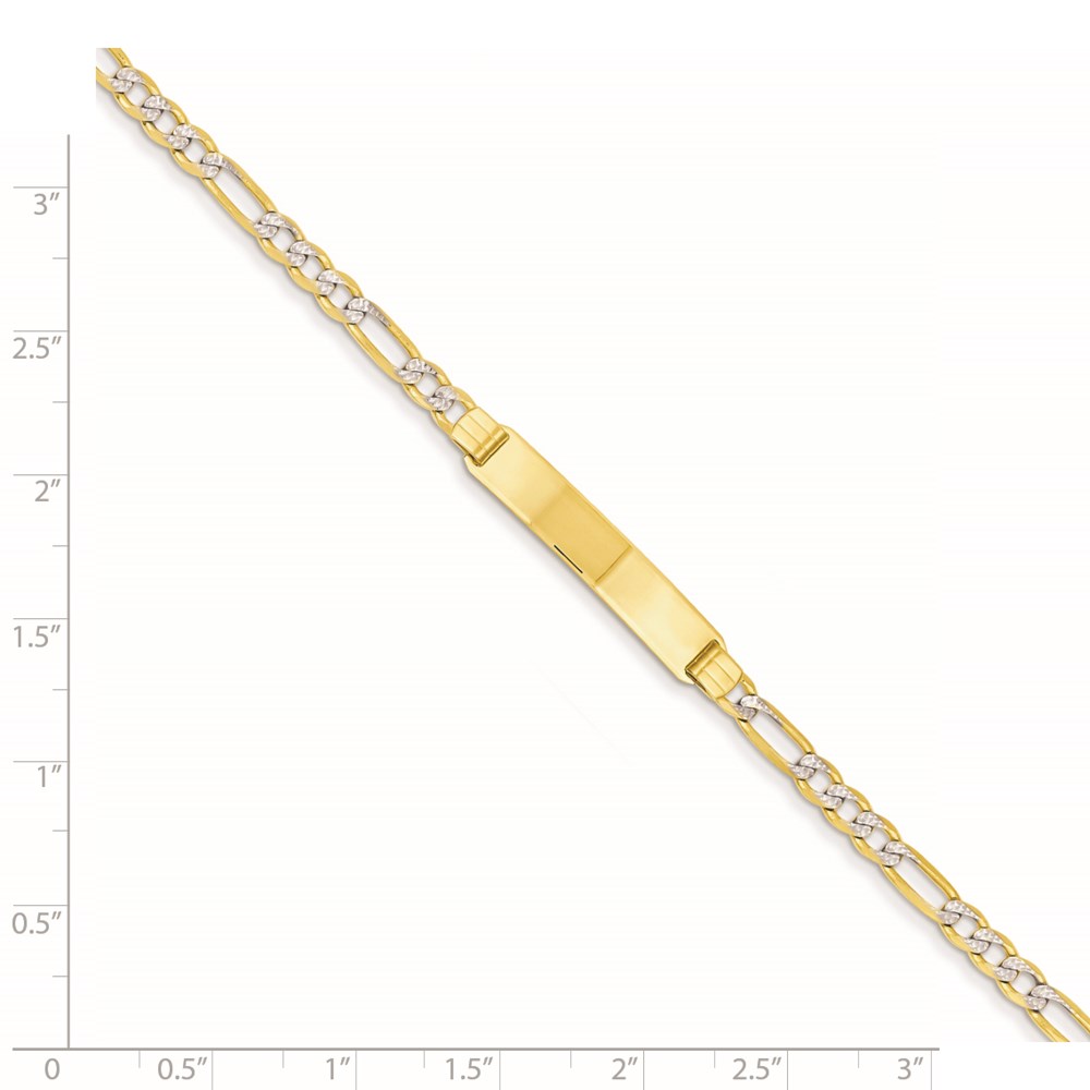 14k Polished with Rhodium Pav‚ Solid Chain/Solid Plate Figaro Link 25.5x5mm Plate ID Bracelet