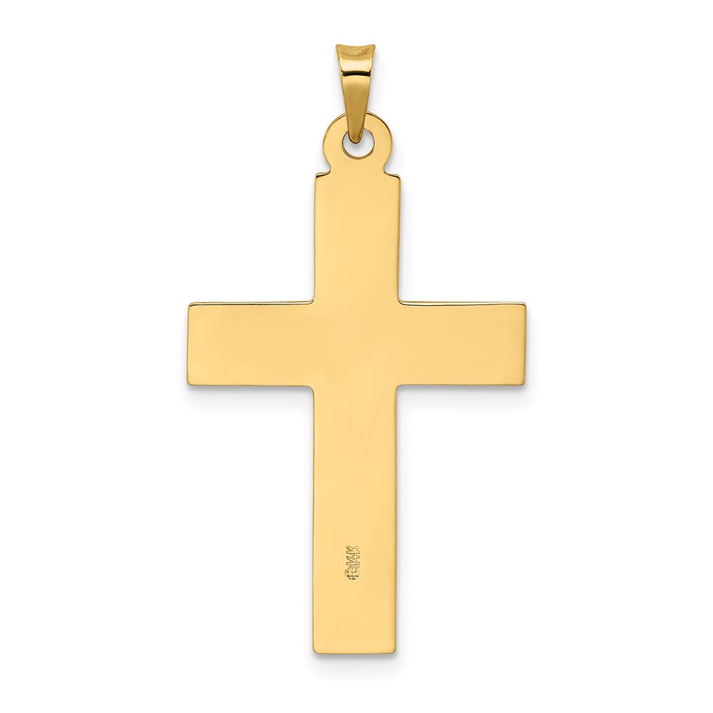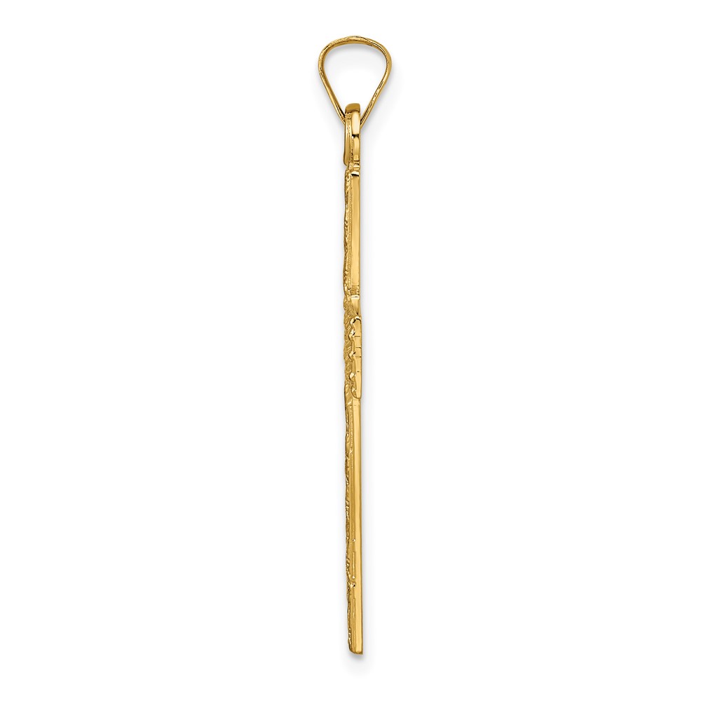 14k Polished Wood Texture Solid Cross Pendant