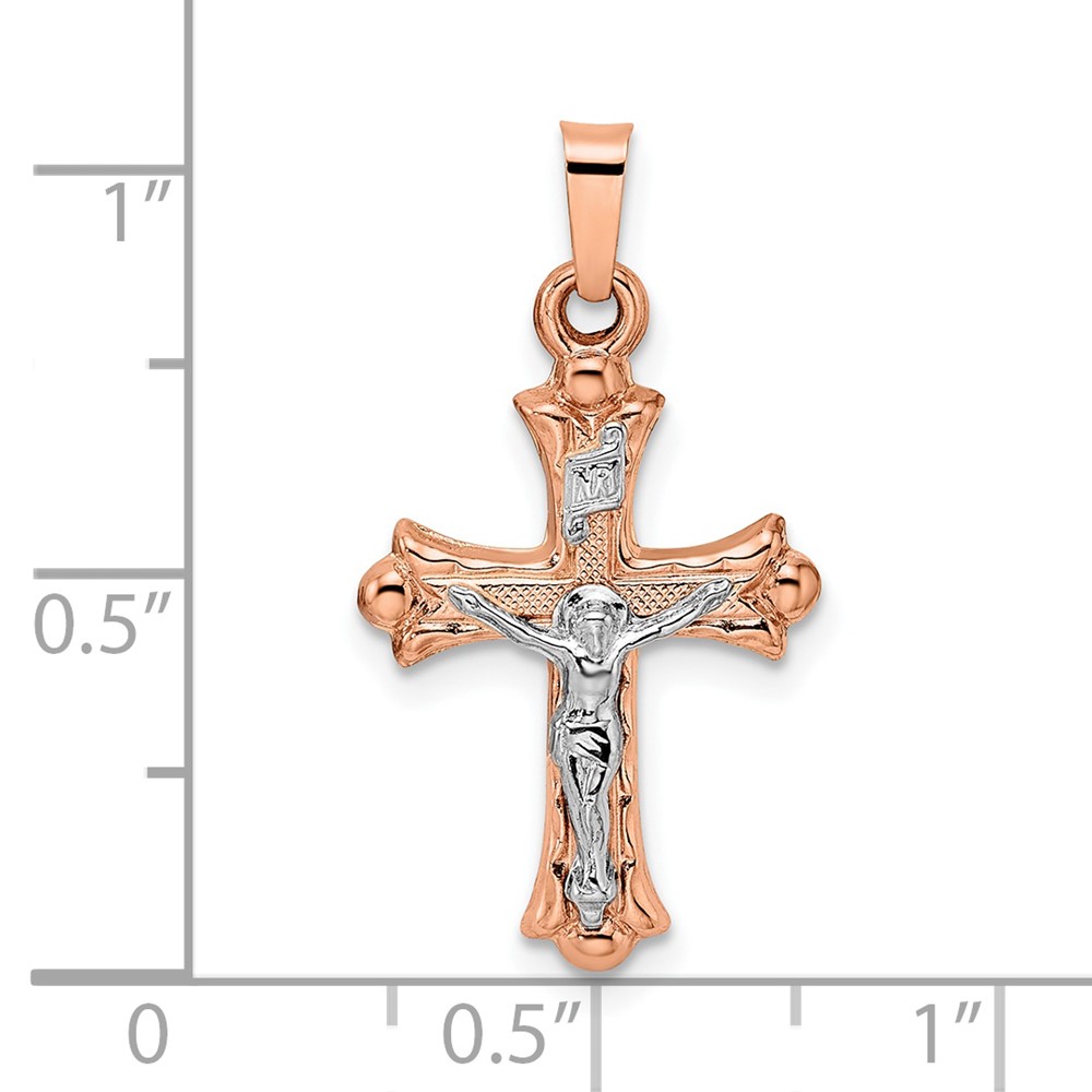 14k Rose and White Gold Polished Fleur de Lis INRI Hollow Crucifix