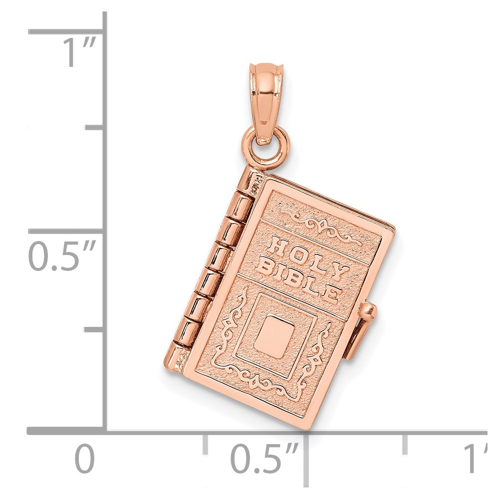 14k Rose Gold 3-D HOLY BIBLE with Lord’s Prayer and Moveable Pages Pendant