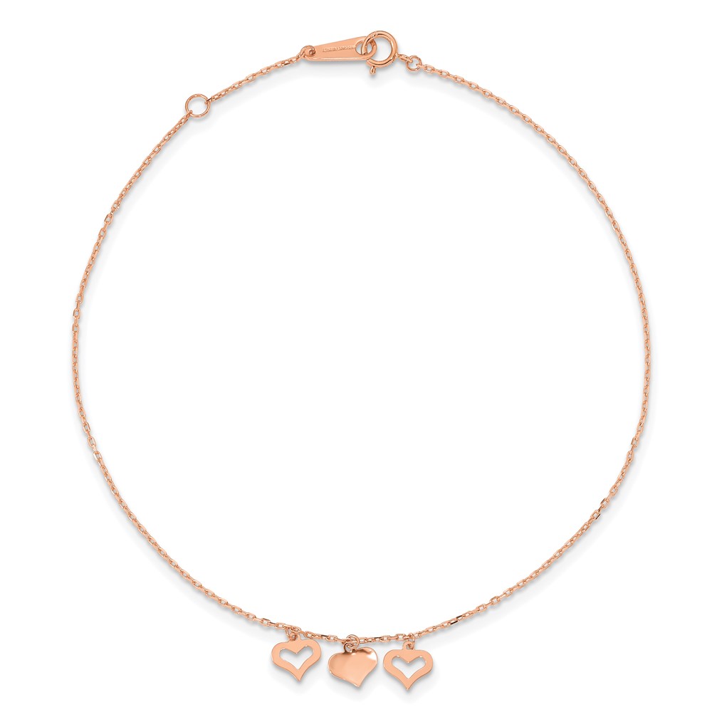 14k Rose Gold 3 Heart Dangles Plus Extender – Total Anklet