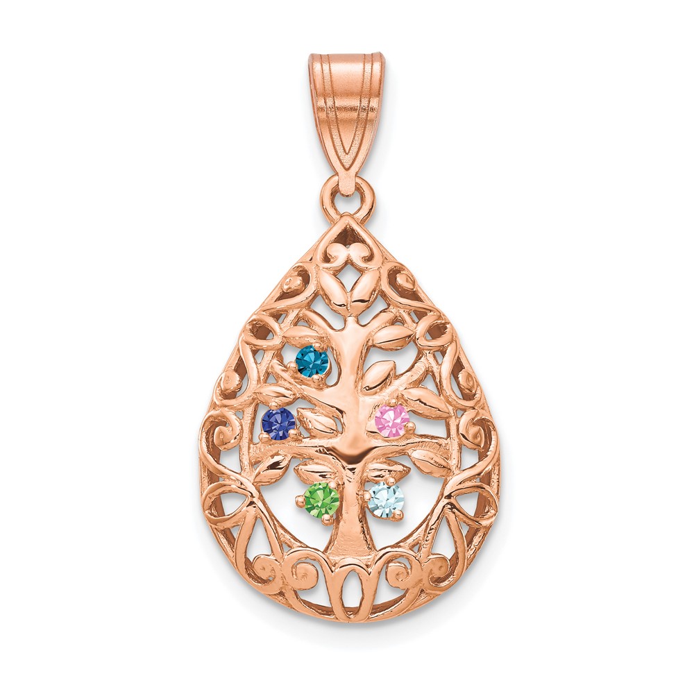 14K rose Gold 5 Birthstone Tree of Life Tear Drop Pendant