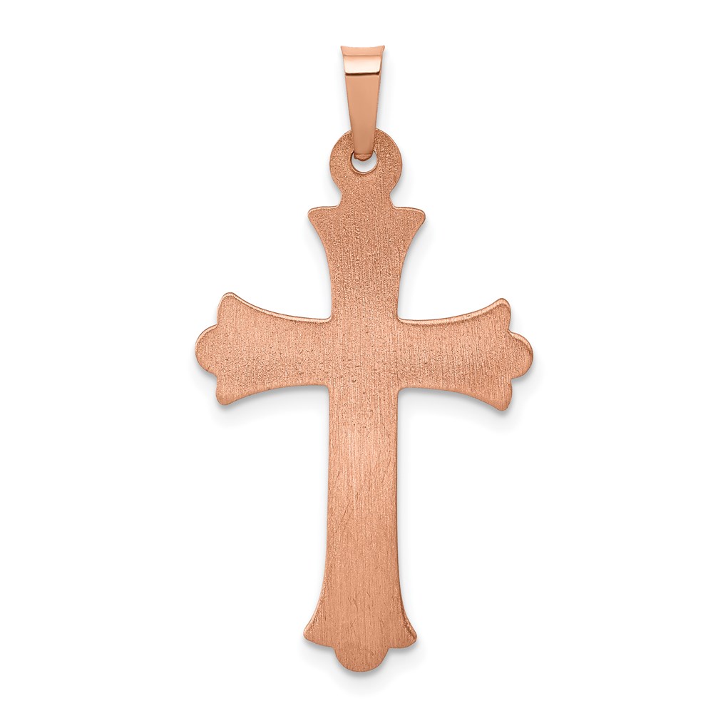 14K Rose Gold Brushed and Polished Fleur de Lis Cross Pendant