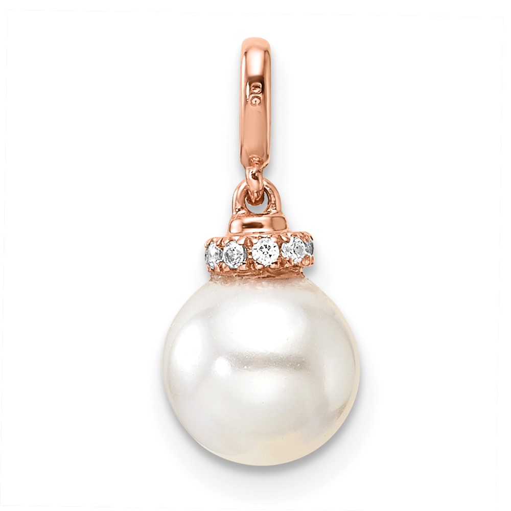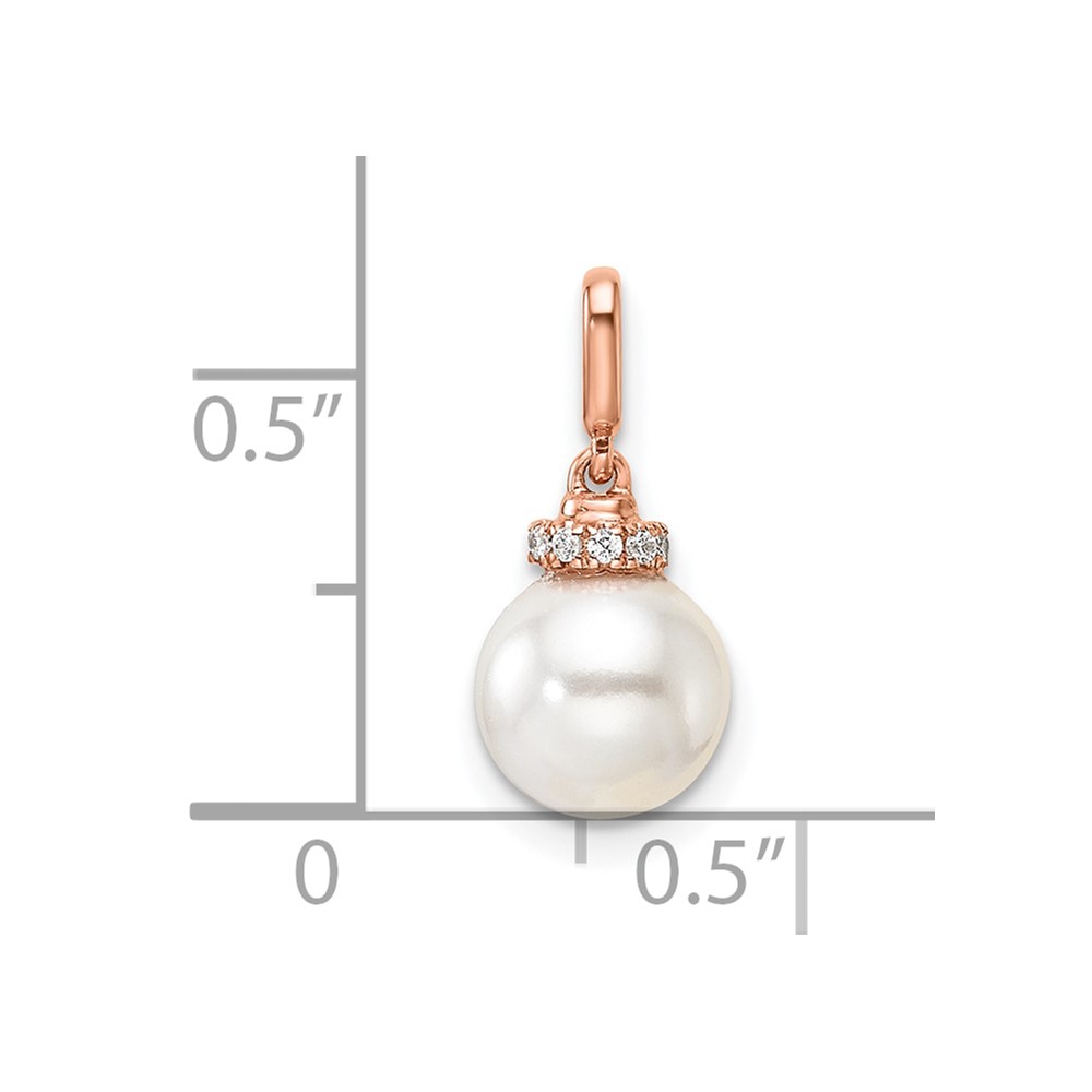 14K Rose Gold Polished 1/20 carat Diamond and White Freshwater Cultured Pearl Pendant
