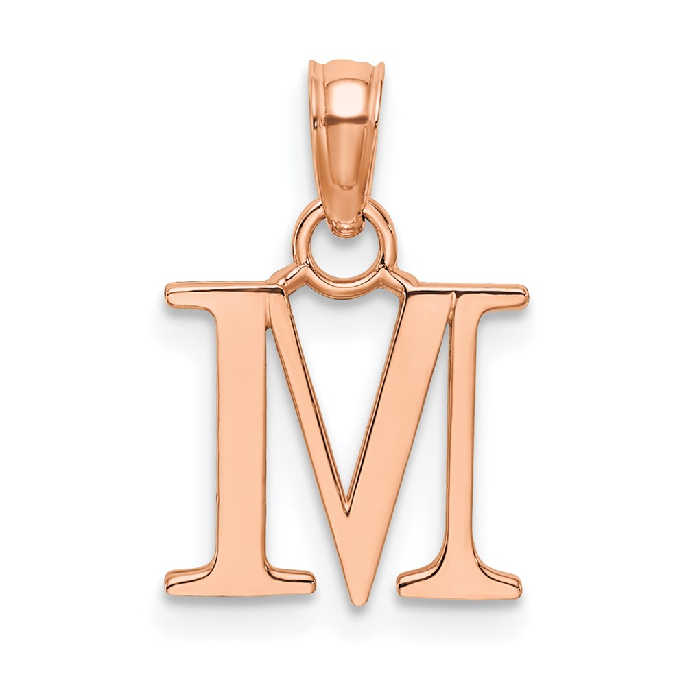 14K Rose Gold Polished Block Letter M Initial Pendant