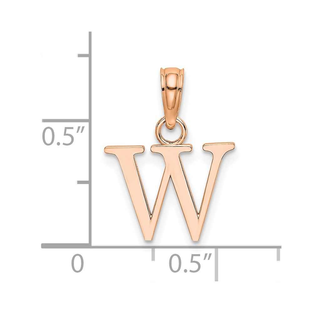 14K Rose Gold Polished Block Letter W Initial Pendant