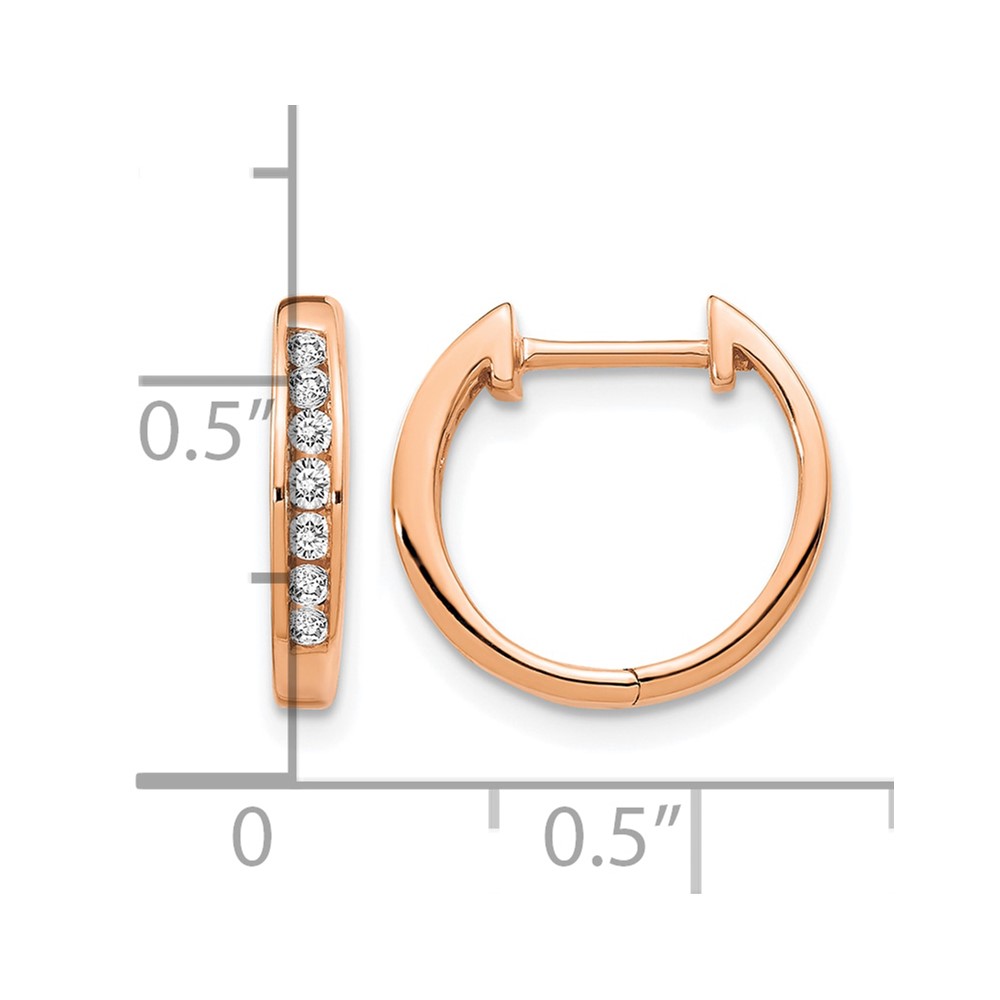 14k Rose Gold Polished Diamond Hinged Hoop Earrings