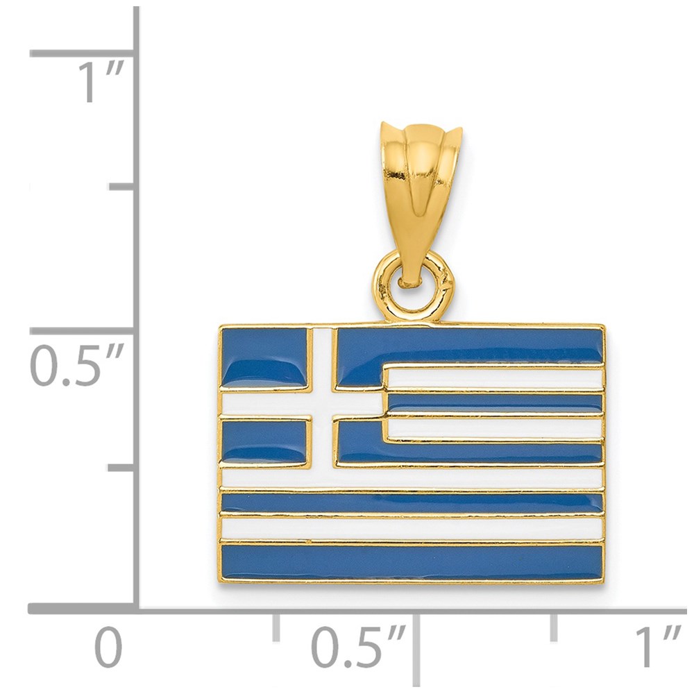 14k Solid Enameled Greece Flag Pendant