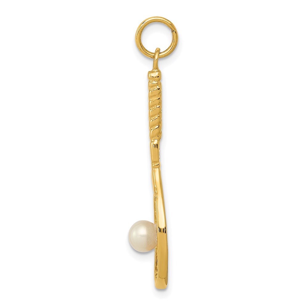 14K Tennis Racquet with Freshwater Cultured Pearl Ball Charm