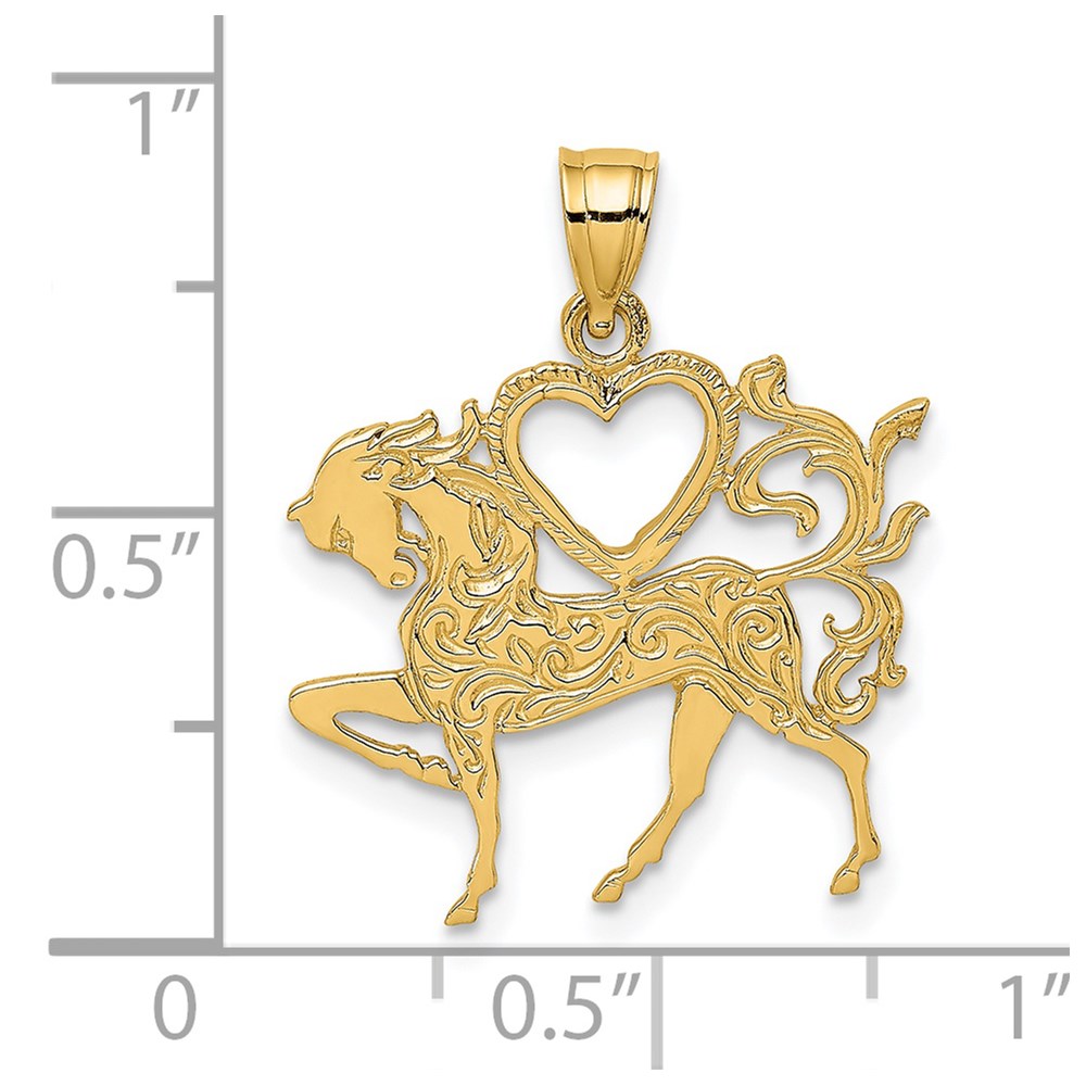 14K Textured Heart and Horse Charm