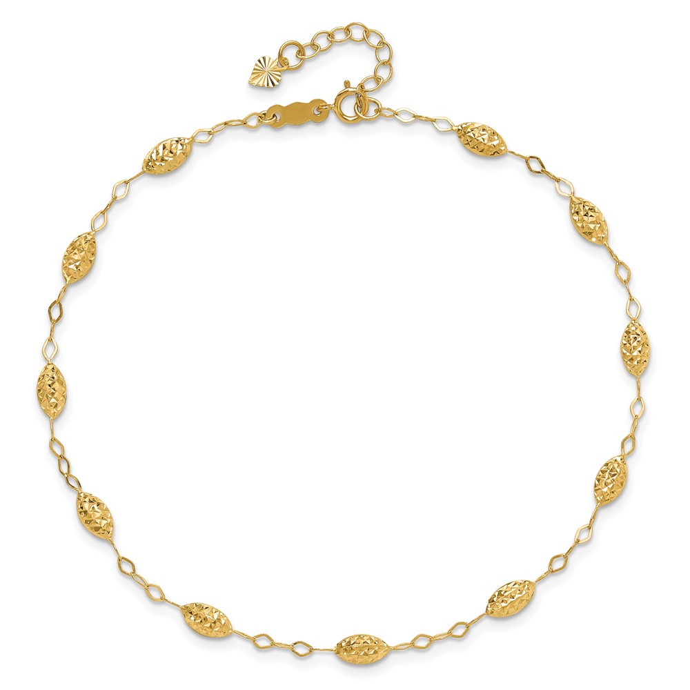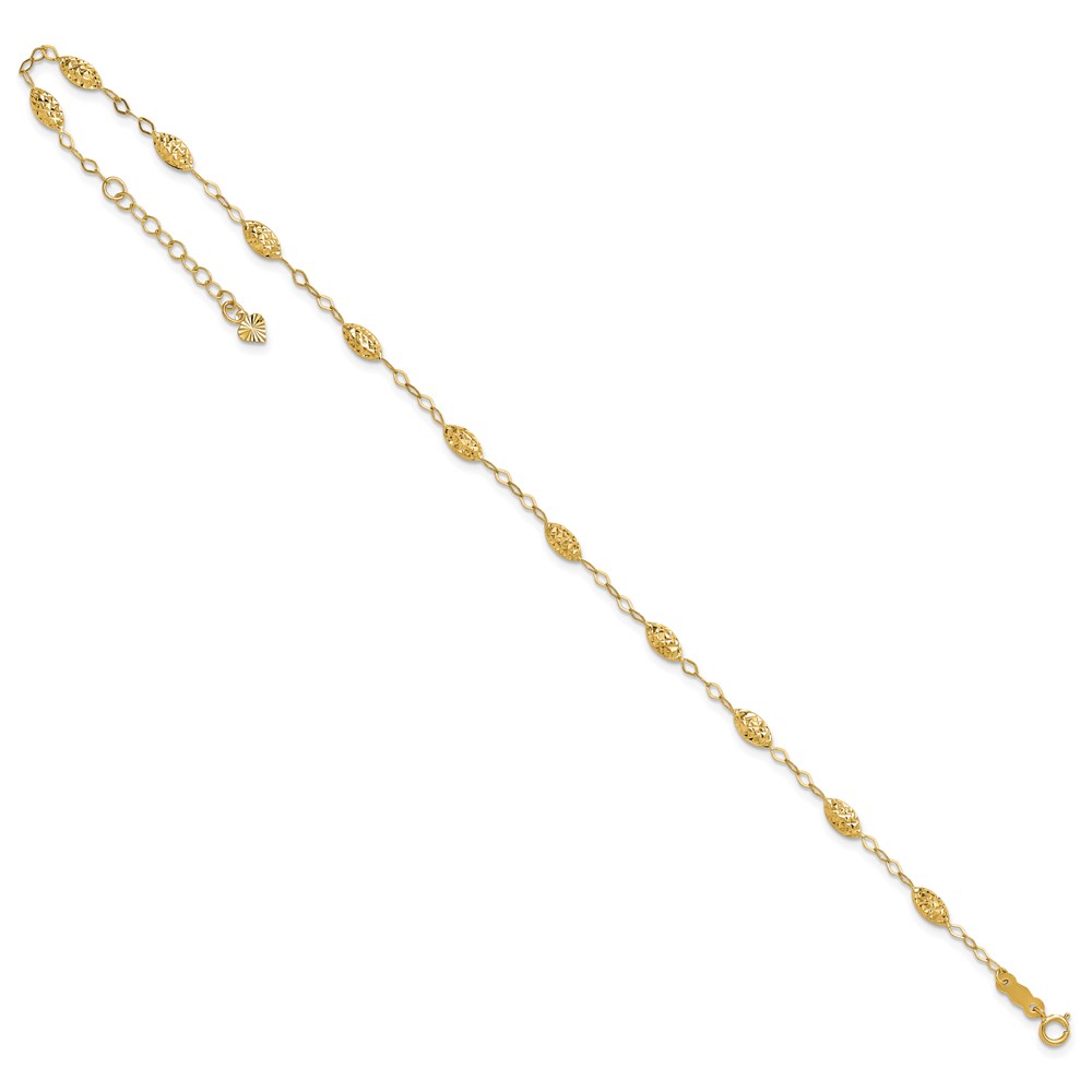 14k Textured Oval Shapes Plus Extender - Total Anklet